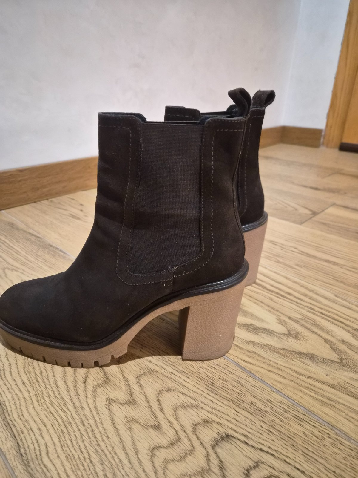 1x obuté, nízky pohodlný opätok, možnosť horné pracky utiahnuť alebo uvoľniť podľa šírky lýtka. Sú na úzke lýtka. Mne su malé, mám nohu 39, po pôrode mi narastla o číslo noha.