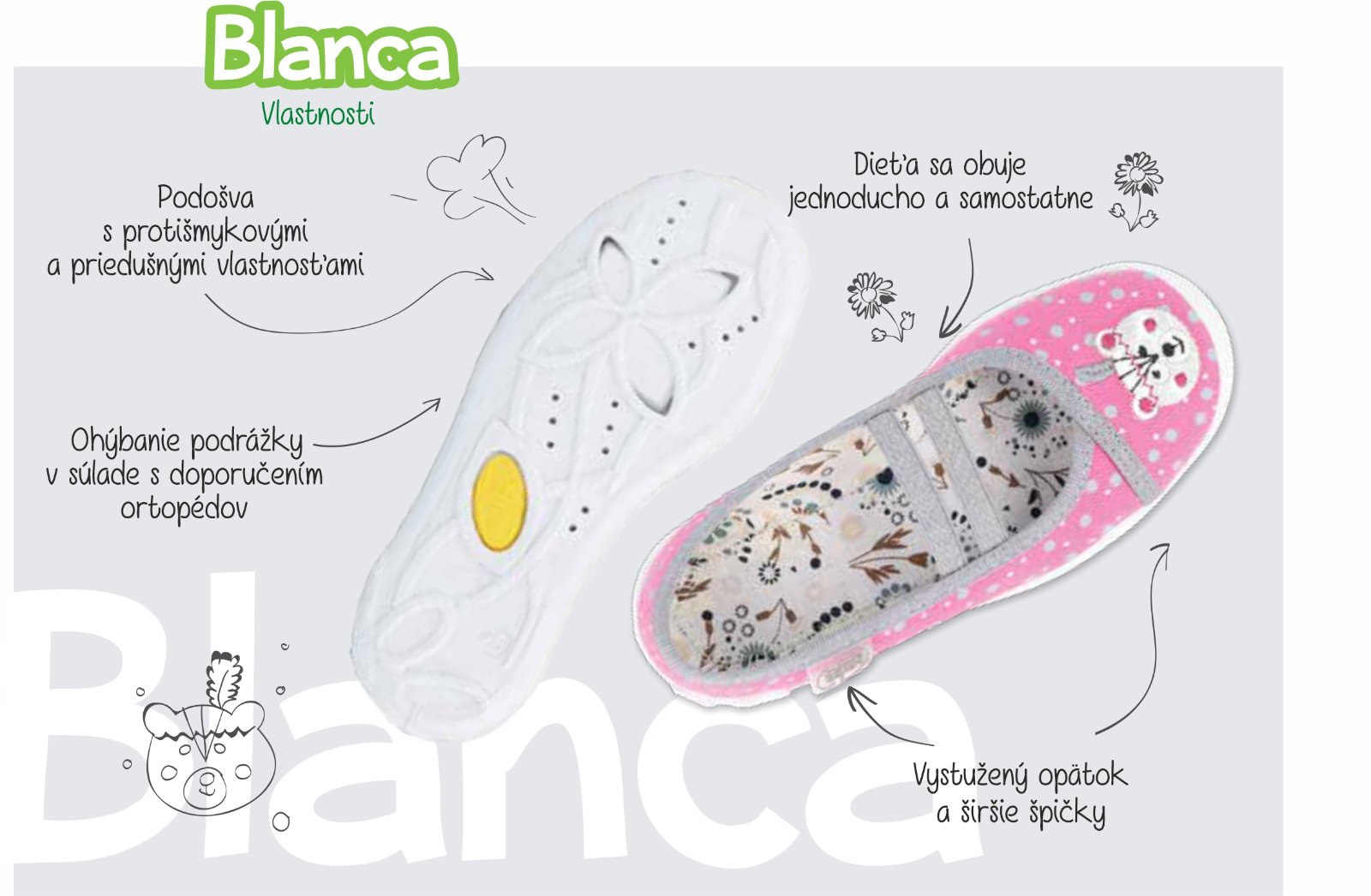 Ľahké plátenky - balerínky sa dajú použiť ako prezuvky alebo topánky na nosenie vonku do suchého počasia. Dievčenské balerínky sú skvelým riešením pre deti, ktorí potrebujú ľahkú a priedušnú obuv. Zapínanie na suchý zips stabilizuje chodidlo a vďaka mäkkej stielke Soft-B System sú veľmi pohodlné. Vďaka použitiu vzdušných, bavlnených látok a priedušnej podrážke sa nožičky dieťaťa nebudú potiť ani po mnohých hodinách nosenia. Obuv je navrhovaná v spolupráci s detskými ortopédmi, spĺňa najnovšie trendy dizajnu a je vyrobená pomocou najmodernejších technológií.