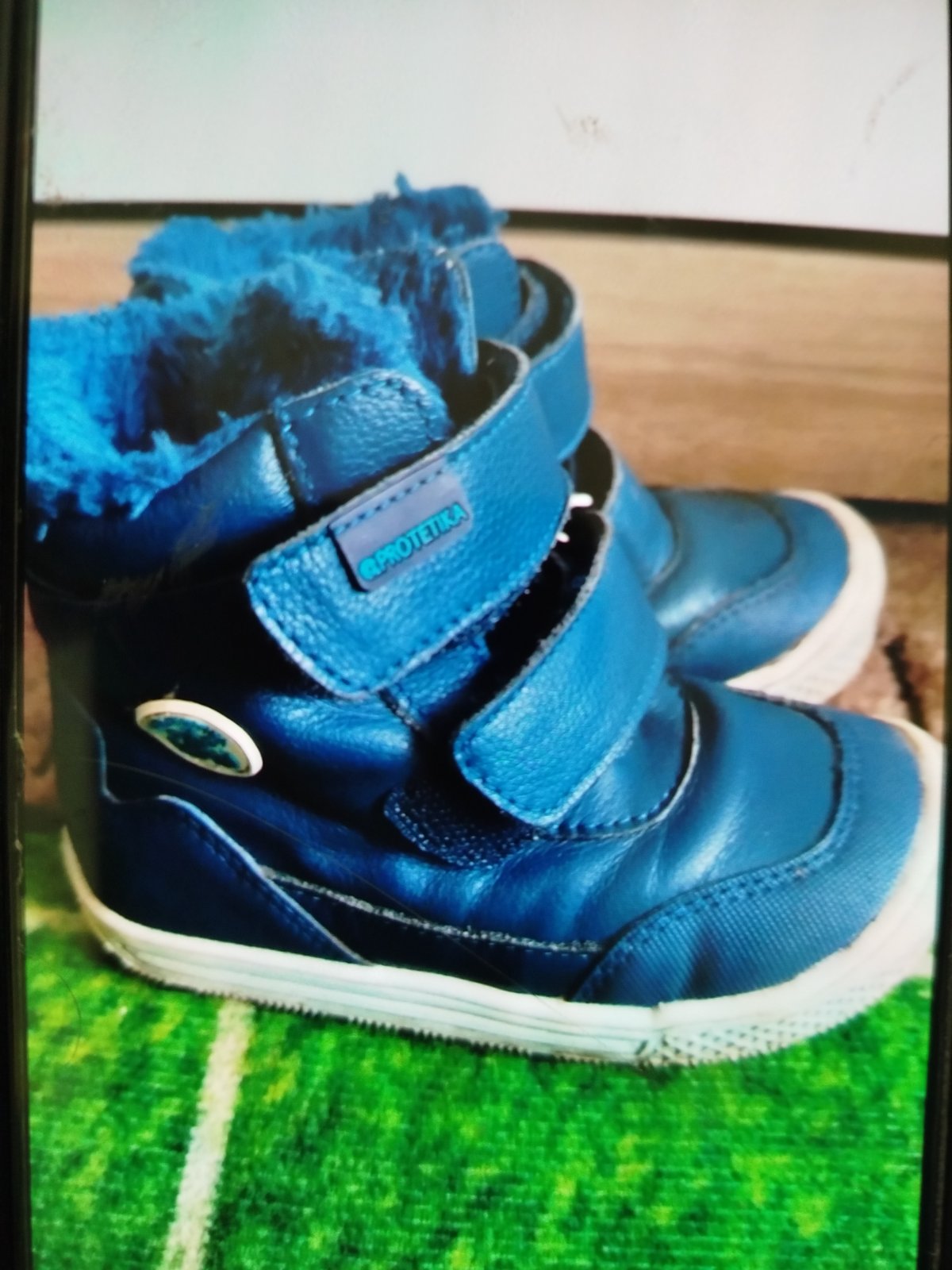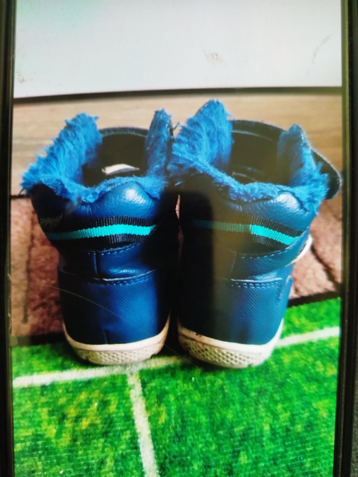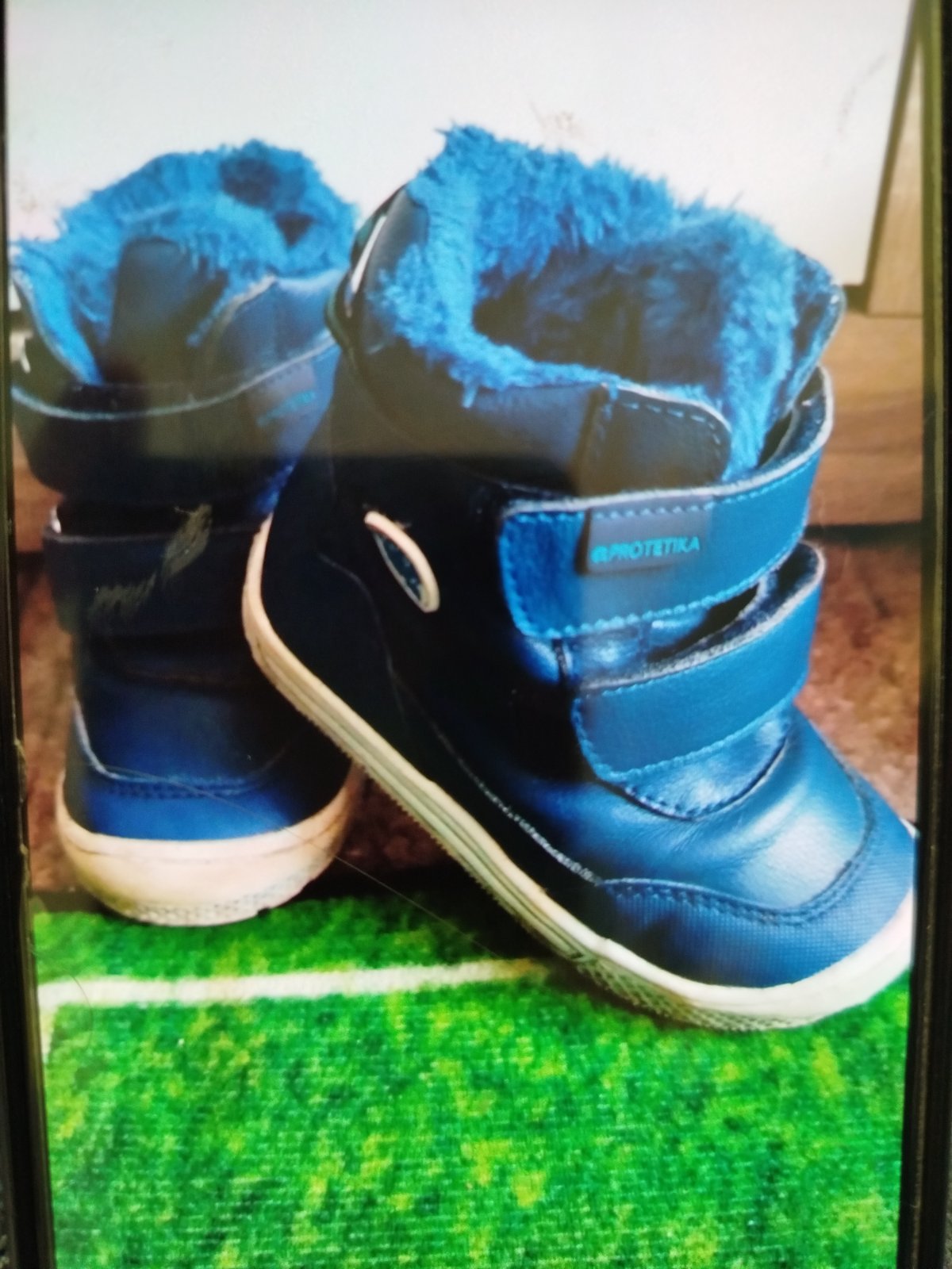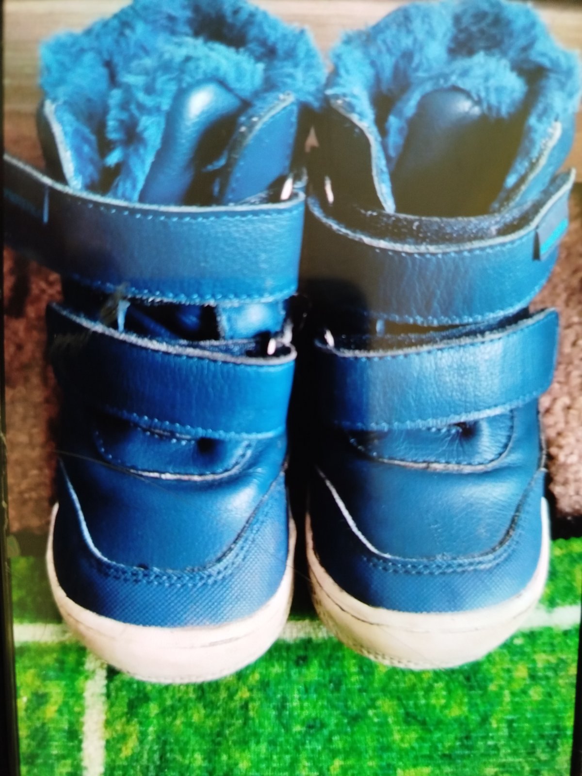 Detské zimné topánky vo výbornom stave. Mierne znaky nosenia na špičkách. VD 14 CM, VŠ 5 CM.