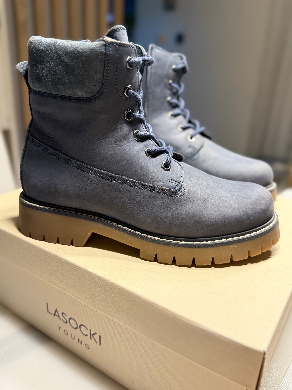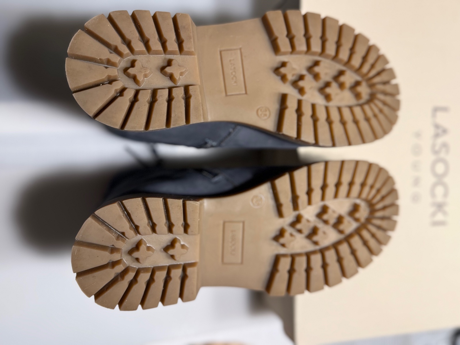 Nosené koženné čižmy Lasocki kupované v CCC, v. 35. Vnútorná dĺžka cca 23cm. Majú známky nosenia (viď foto). Cena 10eur+pošta.