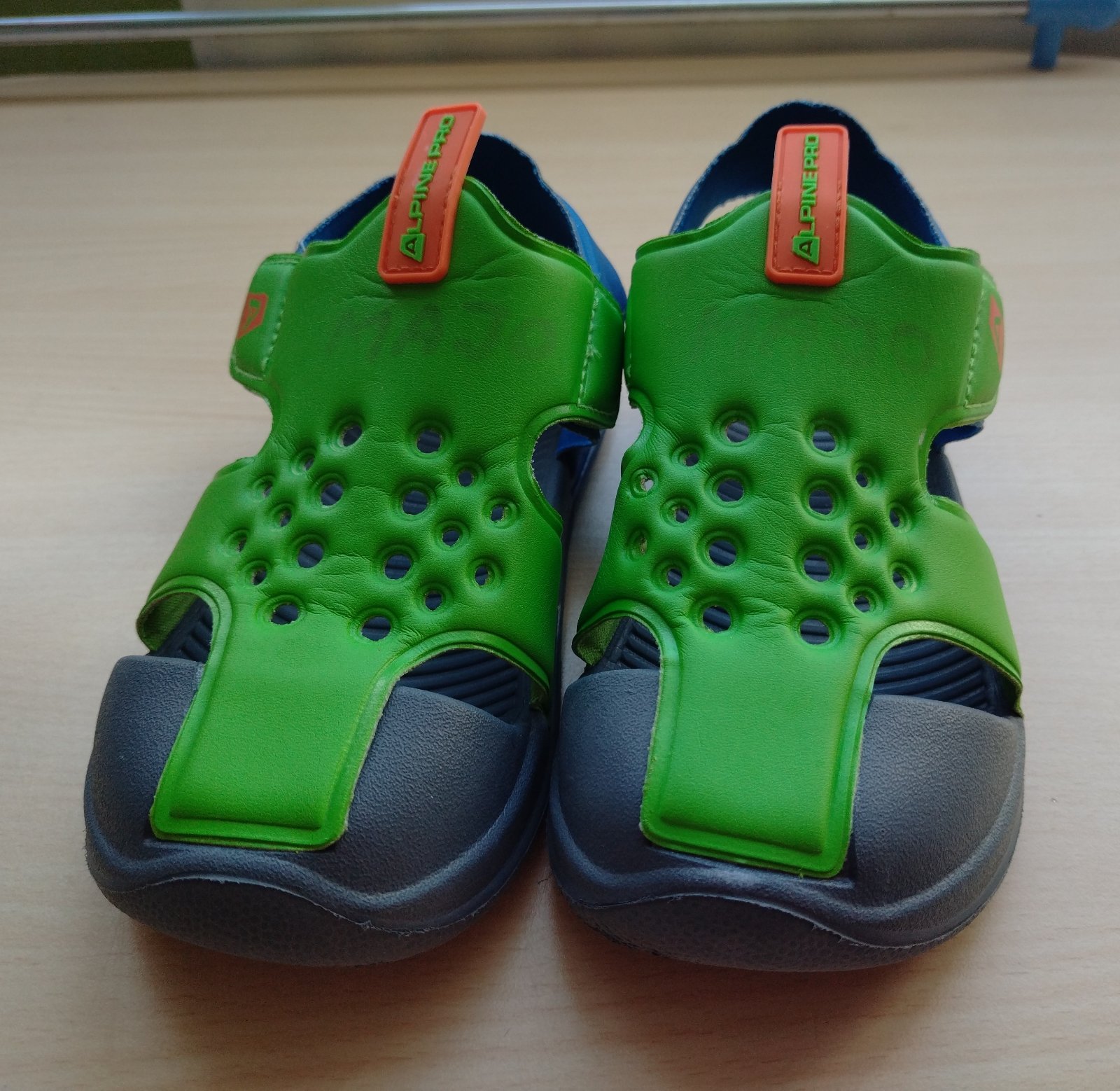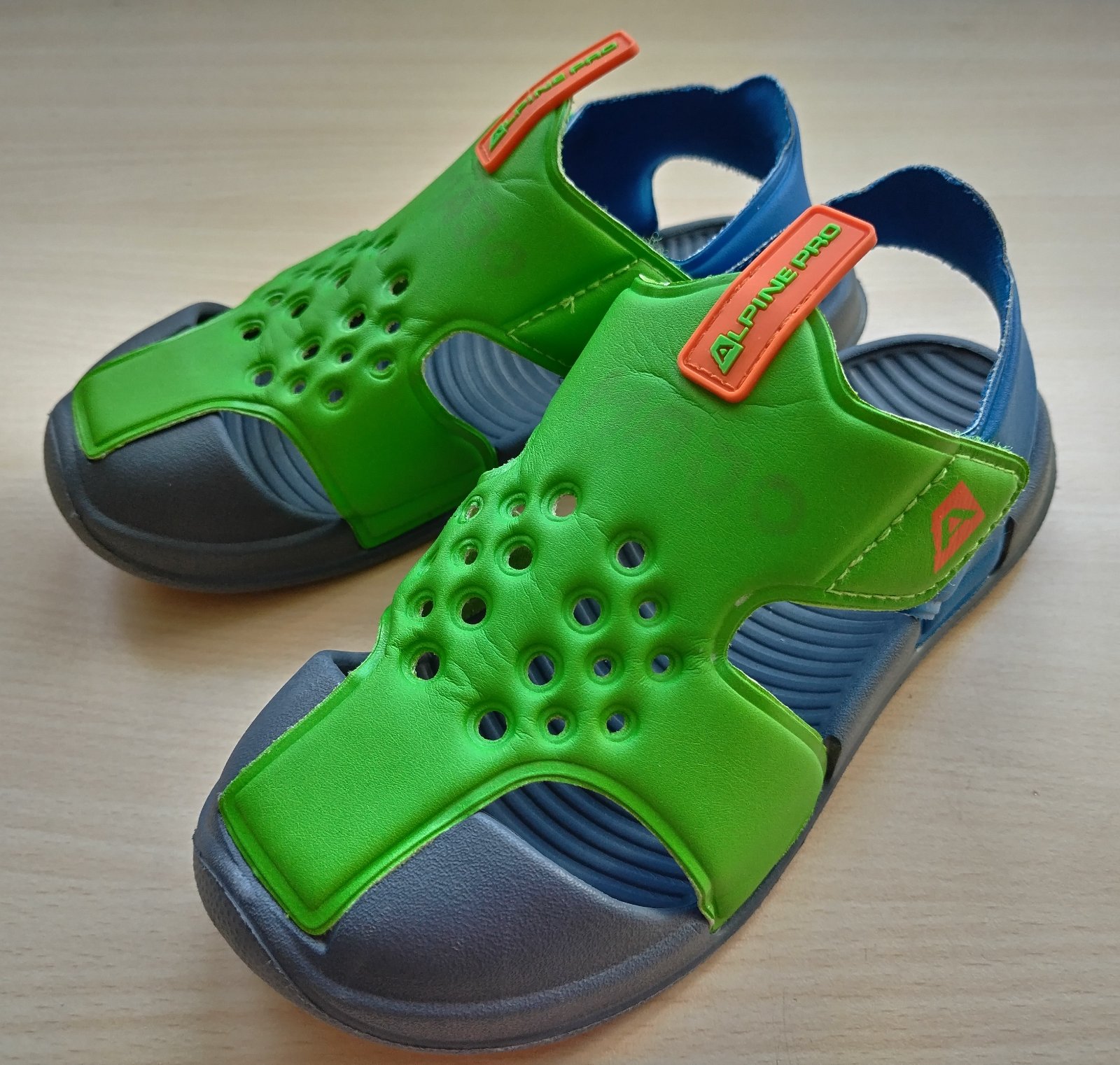 Detské letné sandále značky Alpine Pro, vyrobené z kvalitného a ľahko umývateľného syntetického materiálu, sandále majú zapínanie na suchý zips, čo uľahčuje obúvanie a vyzúvanie, a nastaviteľný pásik na päte pre lepšiu fixáciu nohy, sú ideálne ako ľahká letná obuv k vode alebo na bežné nosenie počas teplých dní.