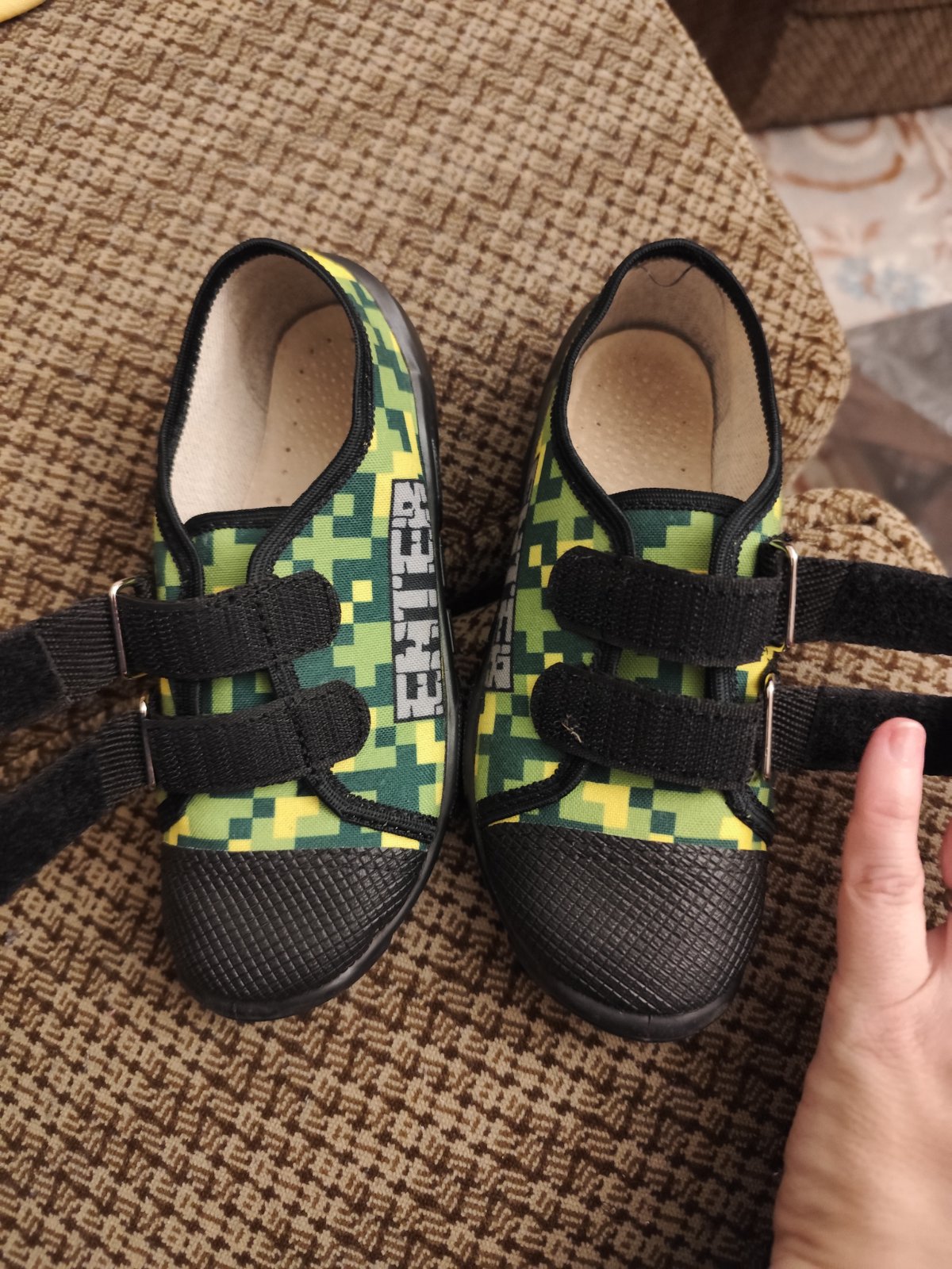 Predam pekne papučky so vzorom minecraft v super stave. Velkost je 29, vnutorna dlzka 18,5cm. Vnutri je ortopedicka perforovana vlozka.