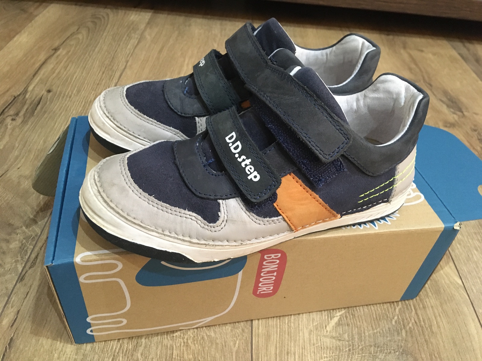 Predám celokožené nízke celoročky D.D.step po mojom synovi. Vnútorná dĺžka 21.5cm, šírka 7.5cm. V dobrom, nosenom stave, bežné známky nosenia zohľadnené v cene. PC 56€