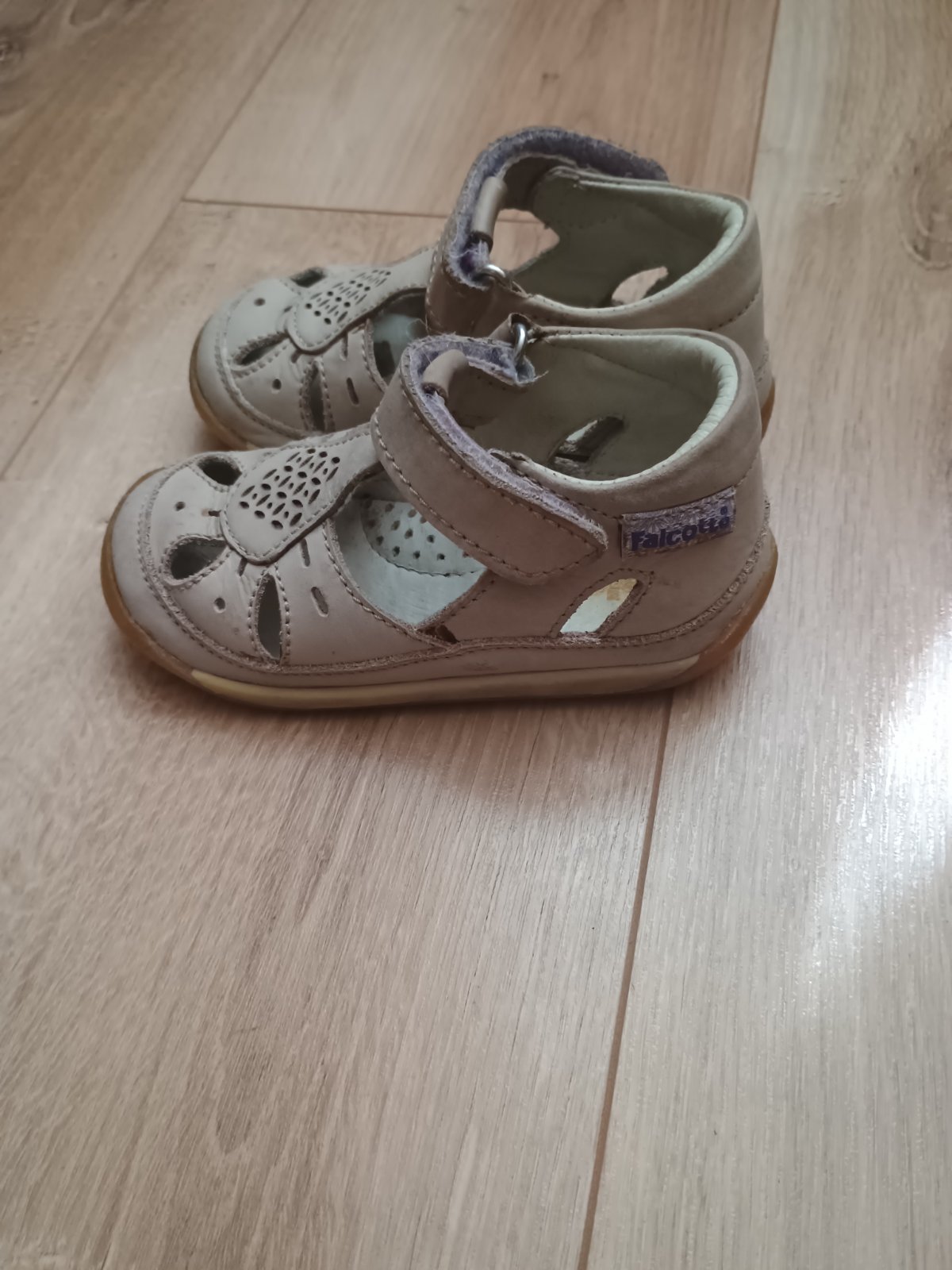 Ľahučké tvarované a hlavne pohodlne letné kožené sandálky pre dievčatko. Prúžky pod suchým zipsom su podšité tenkým neoprénom, aby sandálky neoskierali detskú nozicku. Výborný stav, nosene jedno...