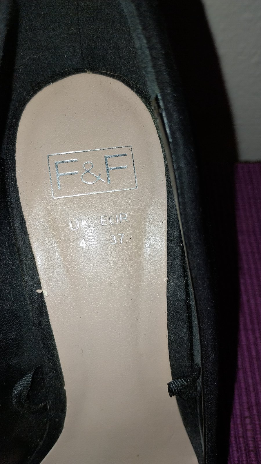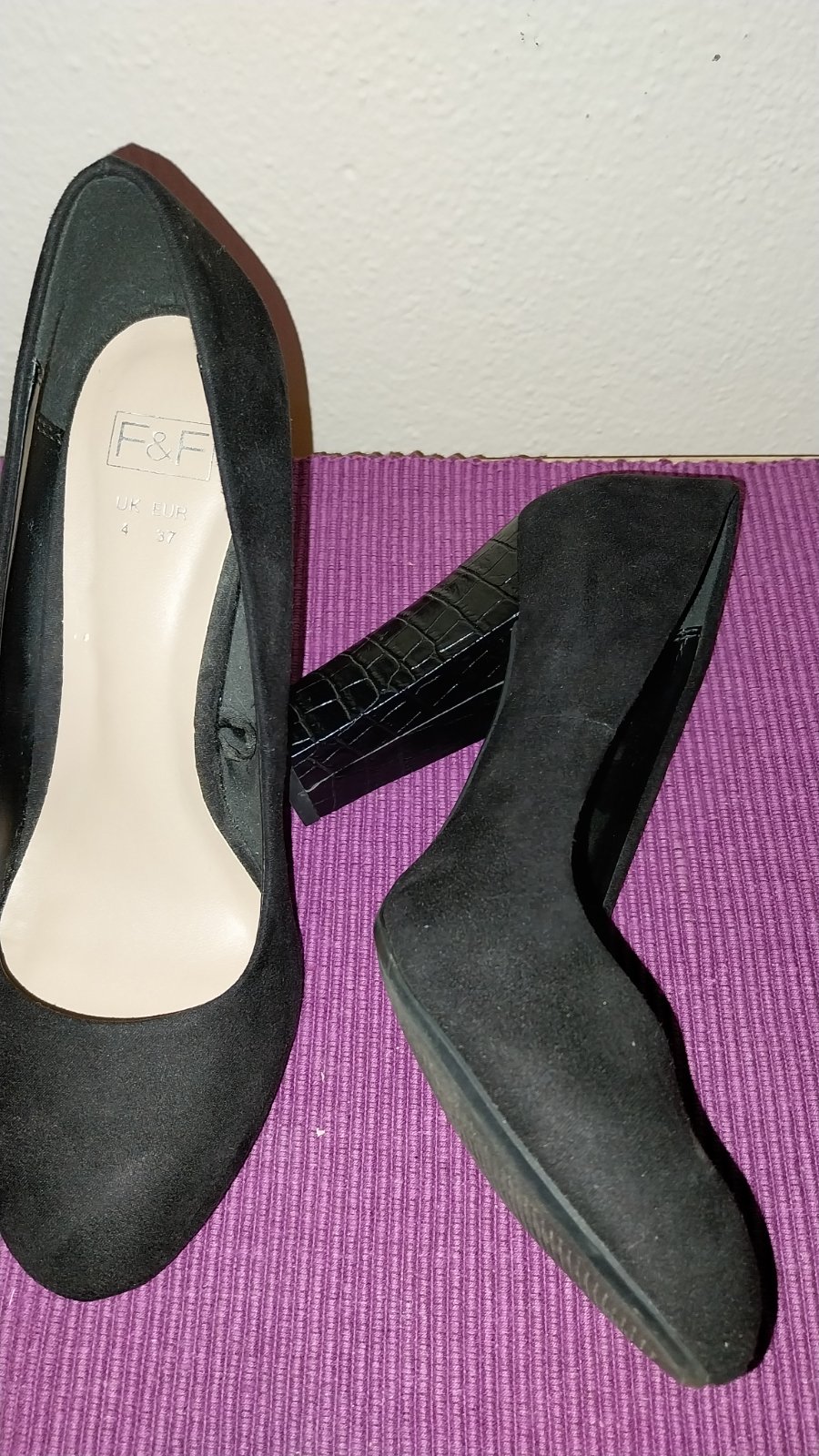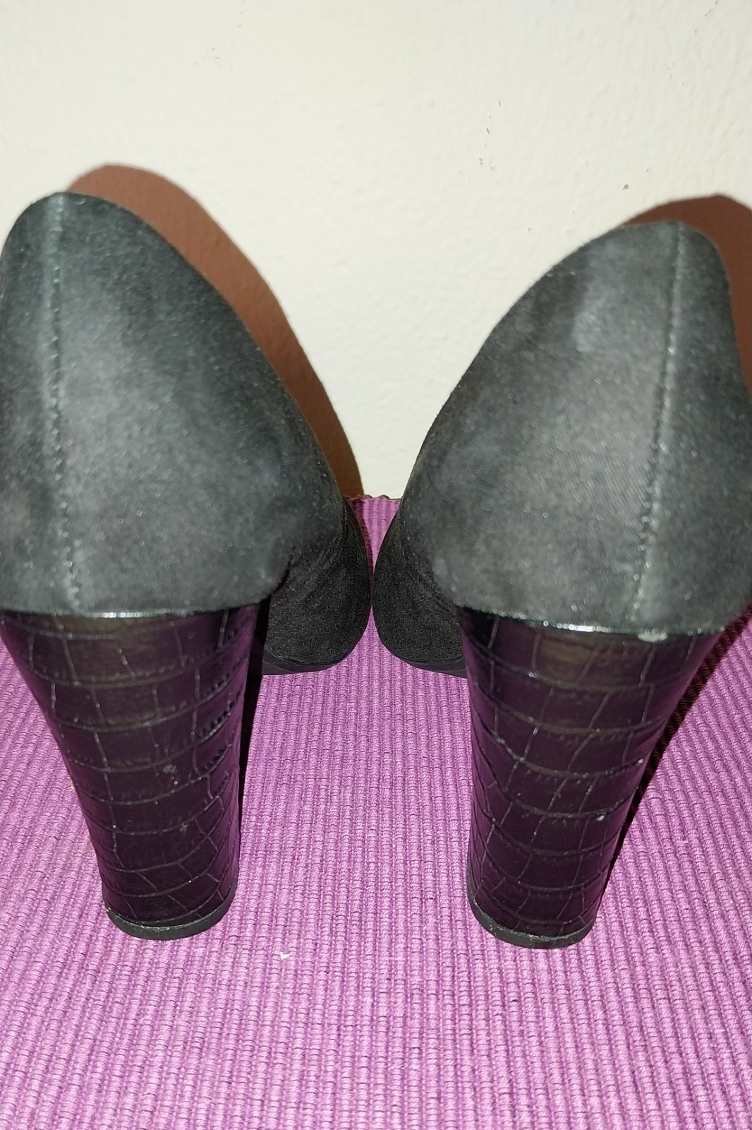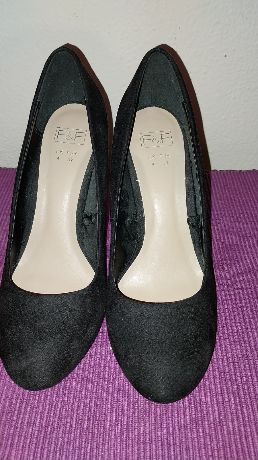 Čierne lodičky na pohodlnom hrubšom podpätku - je stabilný a dobre sa na ňom chodí. Veľkosť je označená 37, ale sedí na veľ. 36 a tak aj udávam. 2x obuté, stav 100%.