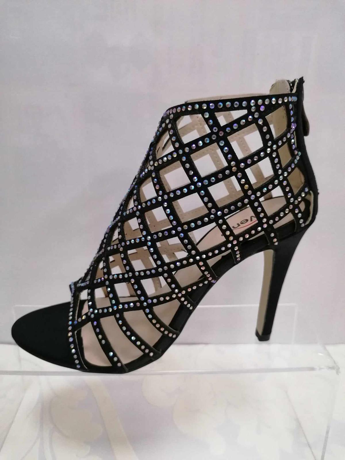 Originálny kúsok do každého ženského botníka. Sandálky sú podšité kožou, vzadu sú na zips. Na sandálkach sú trblietavé kamienky.