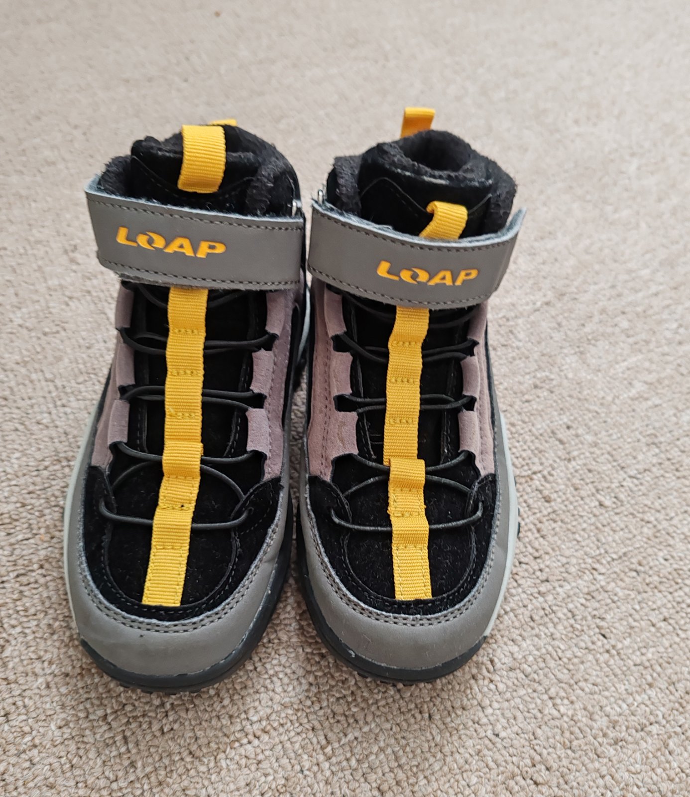 Chlapčenská zimná obuv Loap BUCK má odolný zvršok z pevného, veľmi kvalitného polyuretánu a textílie. Sťahujú sa jedným remienkom na suchý zips a šnúrky sú iba dizajnovým doplnkom. Vďaka hrejivej flísovej podšívke bude vášmu dieťaťu v tejto modernej členkovej obuvi veľmi príjemne teplo. Ľahká podrážka je z mäkkého phylónu, ktorý tlmí všetky nárazy a z kvalitnej termoplastickej gumy, ktorá dobre vzdoruje tlaku.