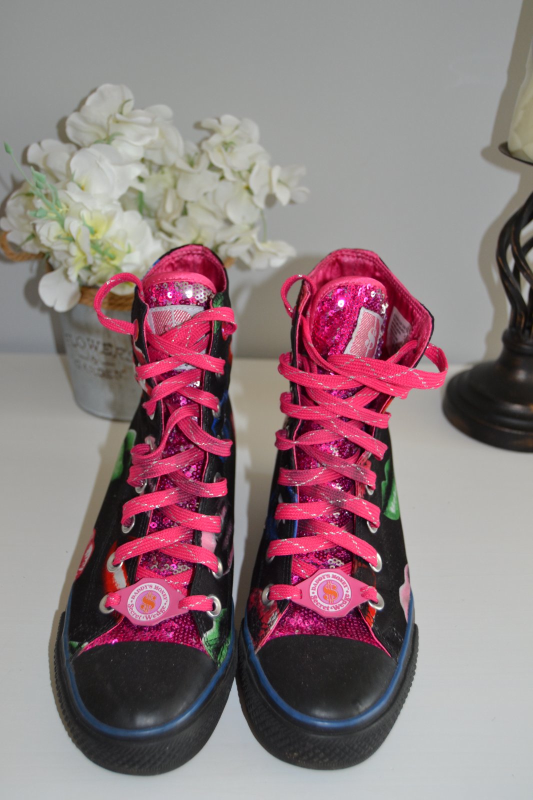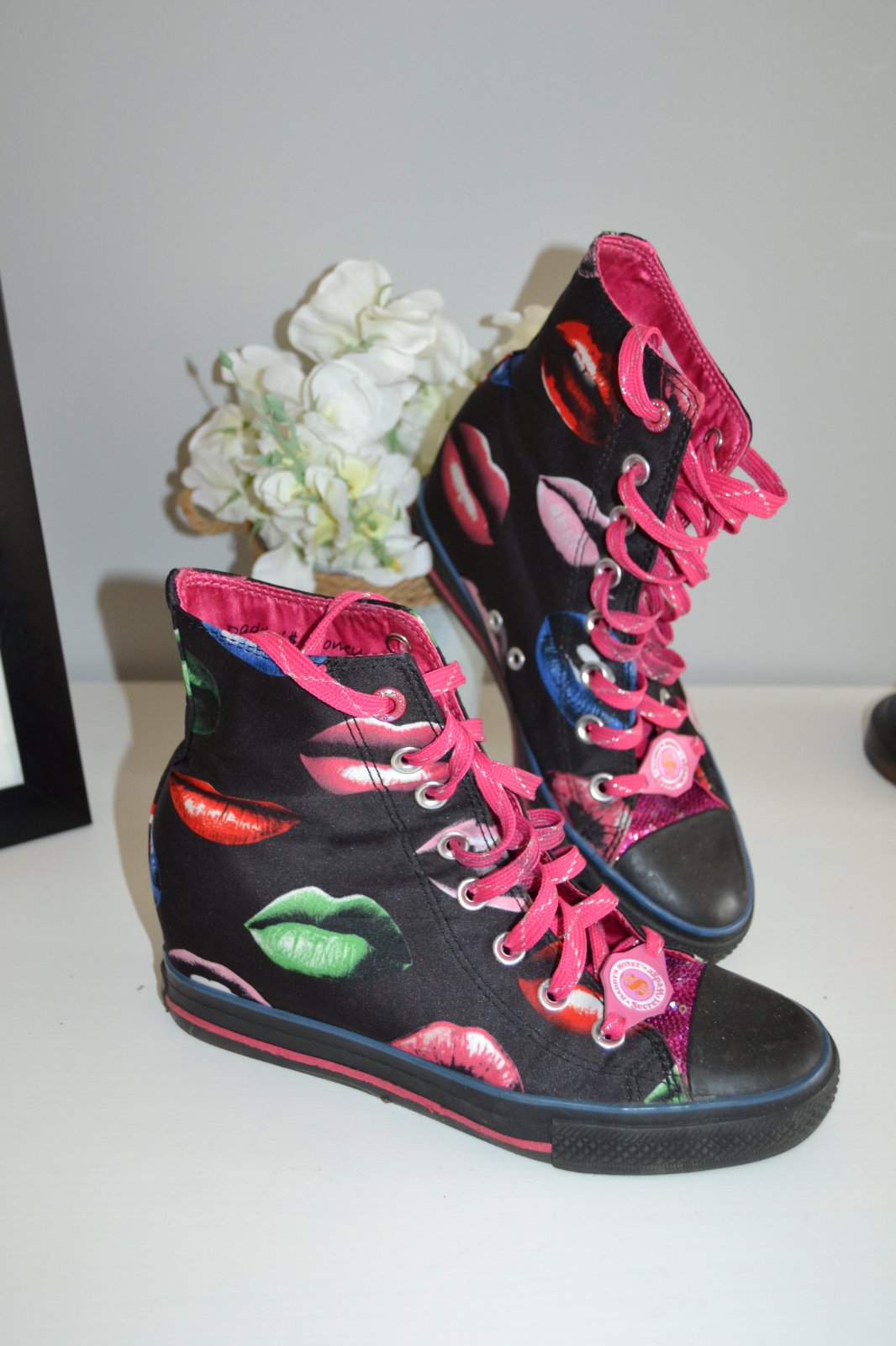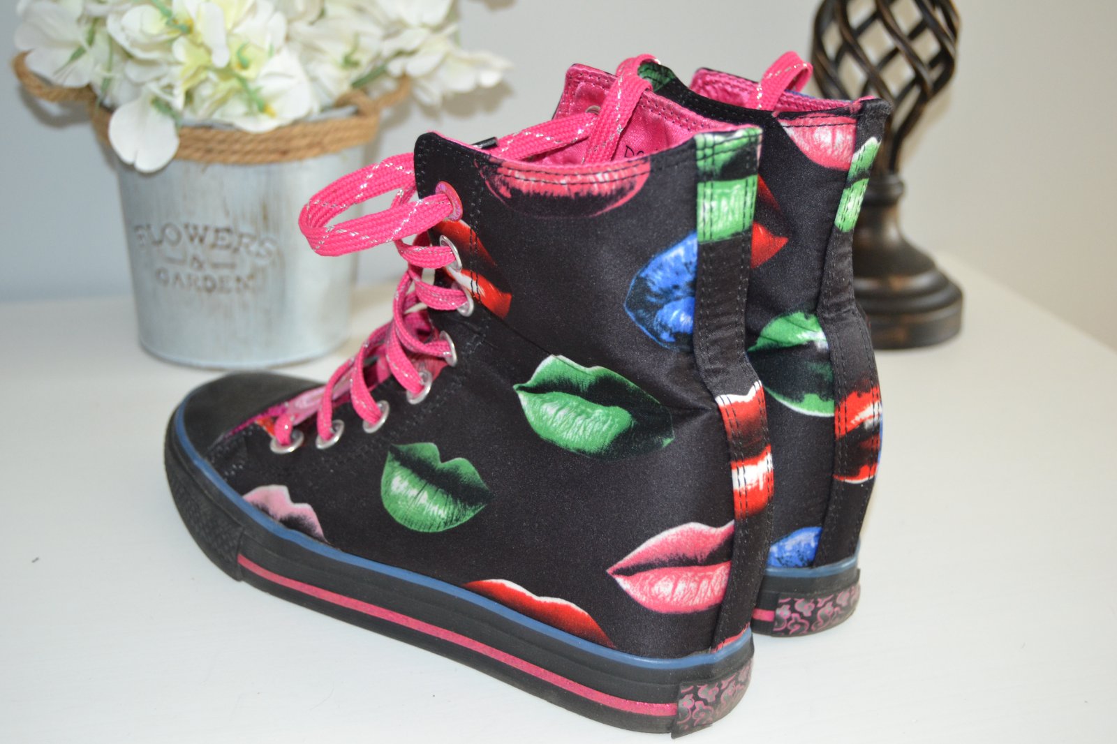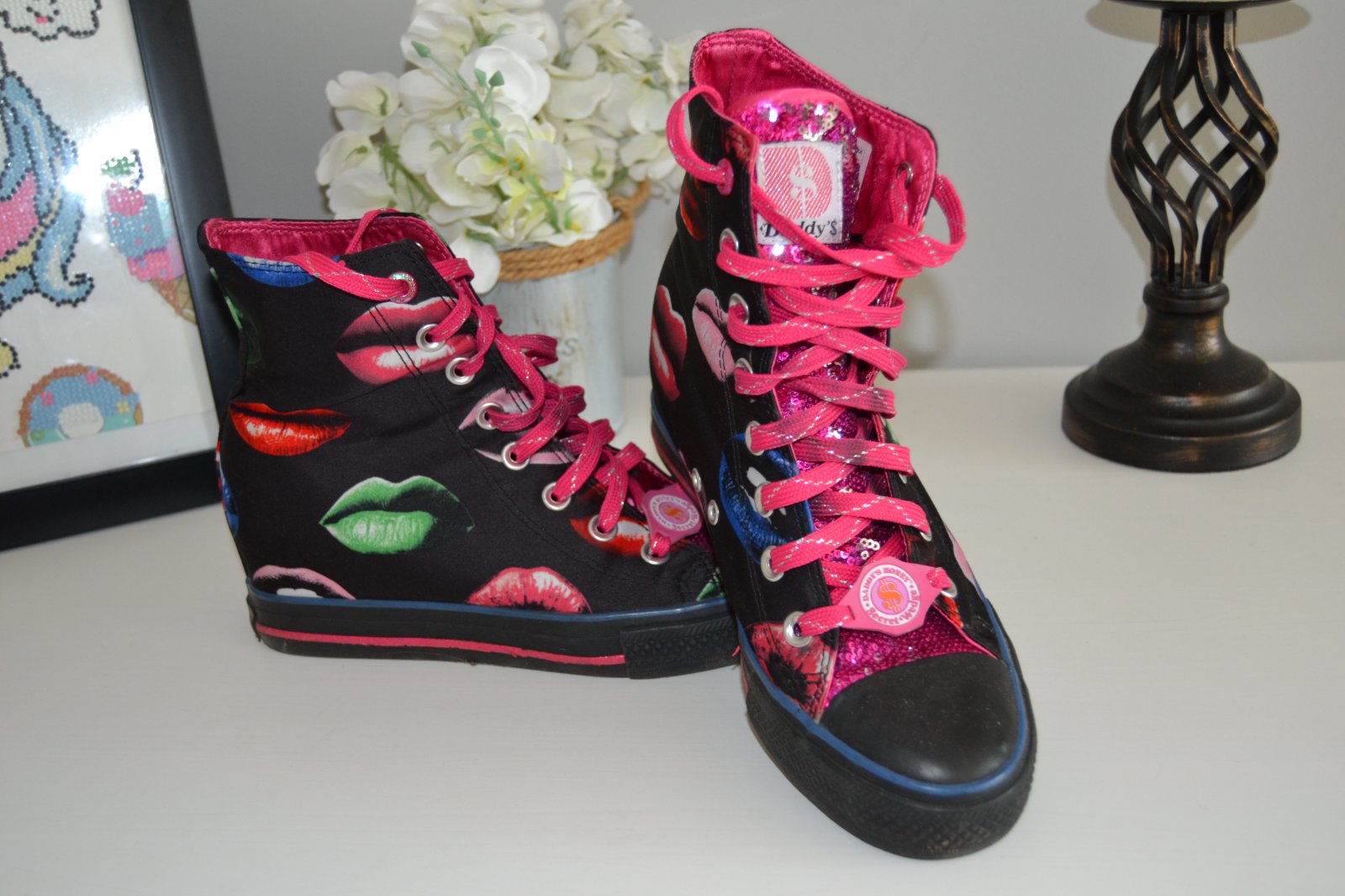 Dámske tenisky na platforme Daddy's money, farba čierna s potlačou, veľkosť 38, uväzovanie na šnúrky, flitrový jazyk.