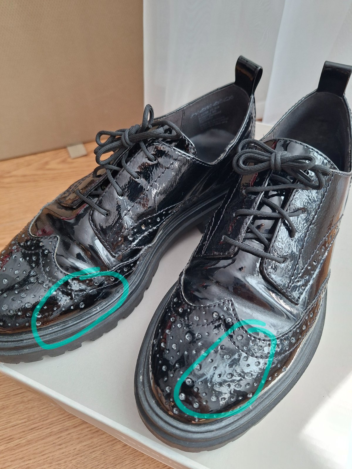 Zvnútra kožené. Na vrchu zopár škrabancov (viď foto), pri noseni ale nie je vidno.