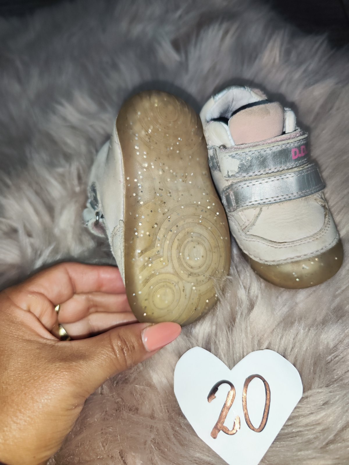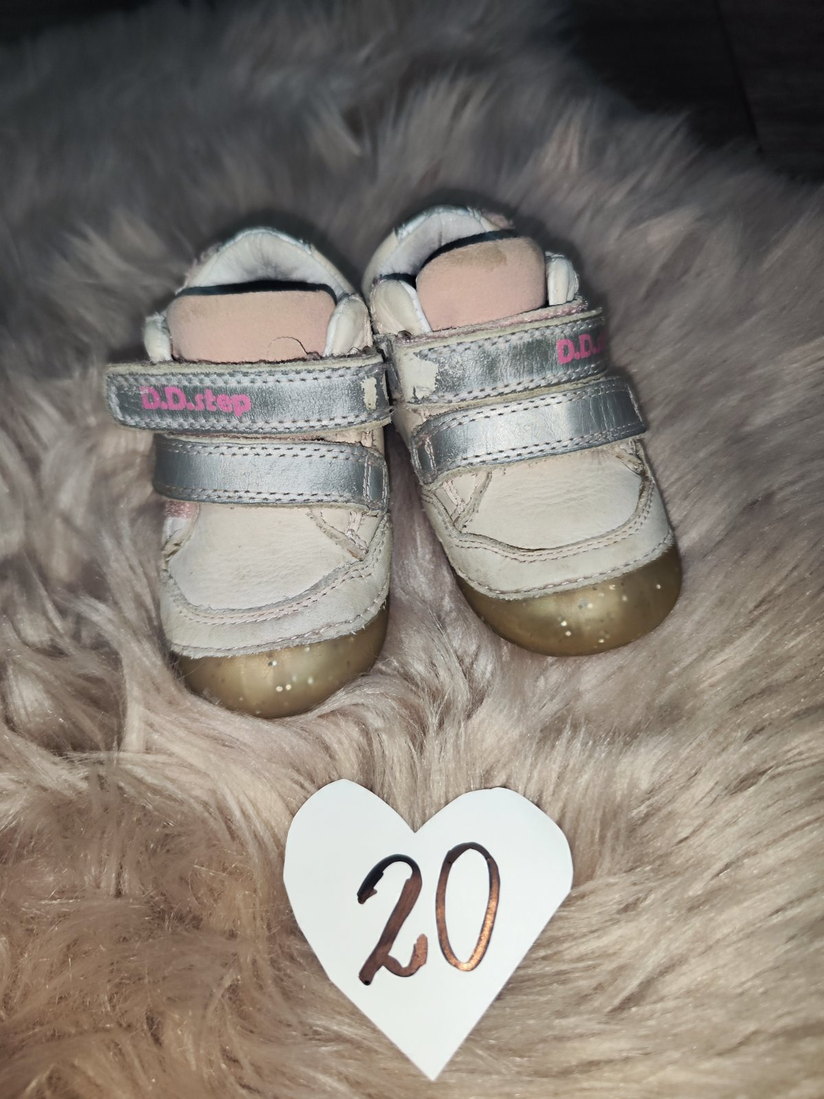 Celoročná obuv, barefoot typ, jednorožec motív, bleducko ružové. Veľ 20. Materiál koža. Dostatočná šírka aj pre buclatejsie nôžky. Veľkosť zodpovedá. Nosenejši stav, zohľadnila som v cene
