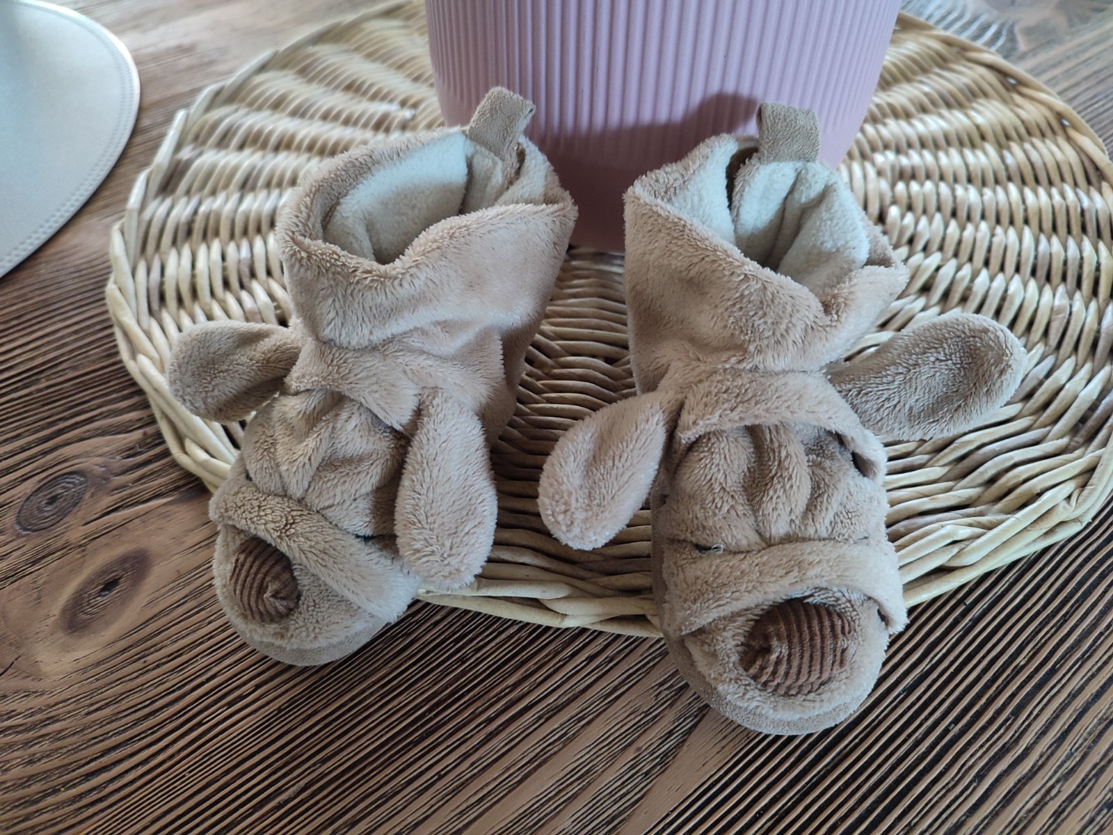 Nové capačky, kúpené predčasne, boli nám dobré v lete. Sú zateplené. Dĺžka podrážky: 11cm. Cca s veľkosťou oblečenia 68 (3-6mes). Pôvodná cena: 6,99 €.