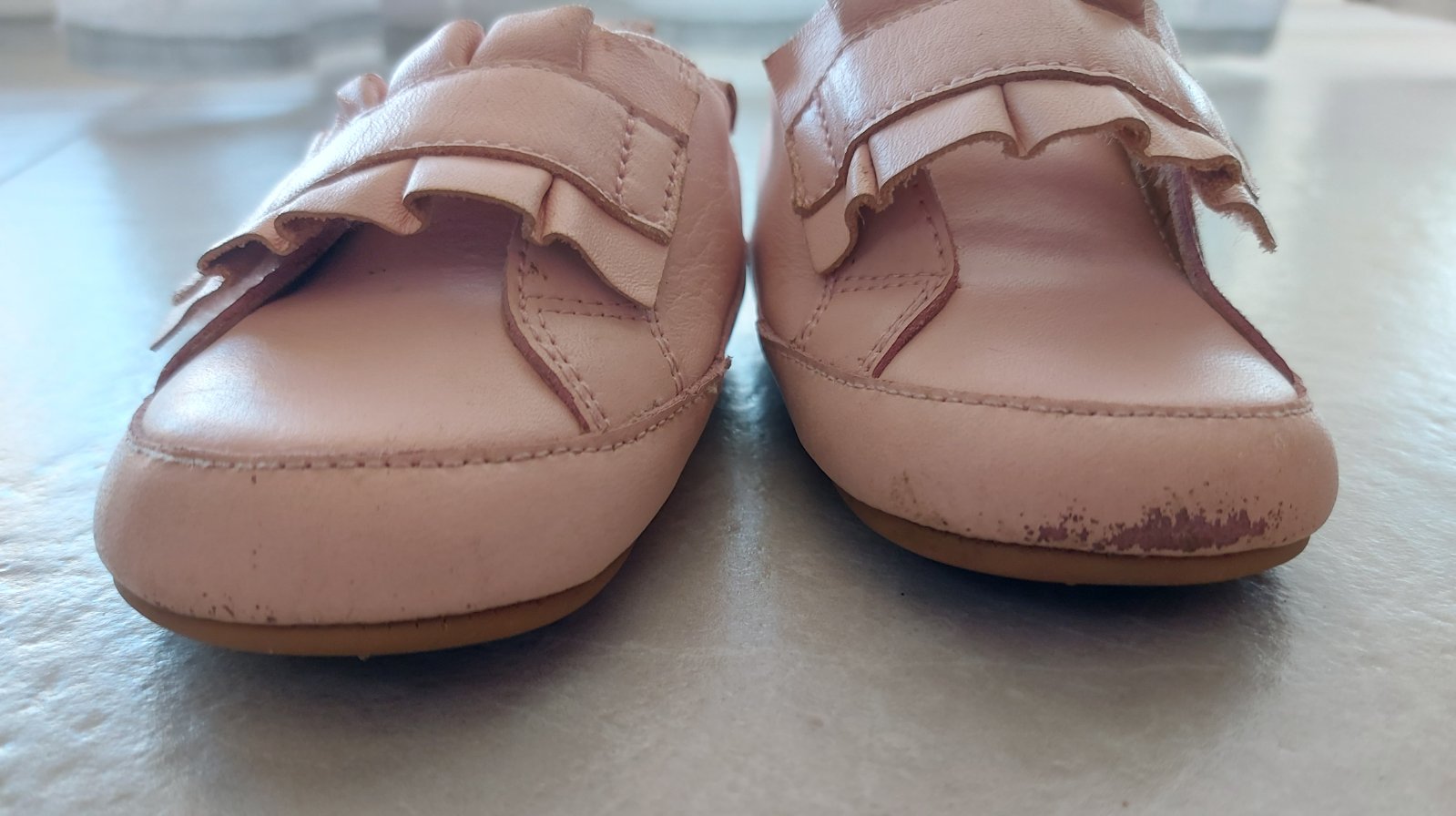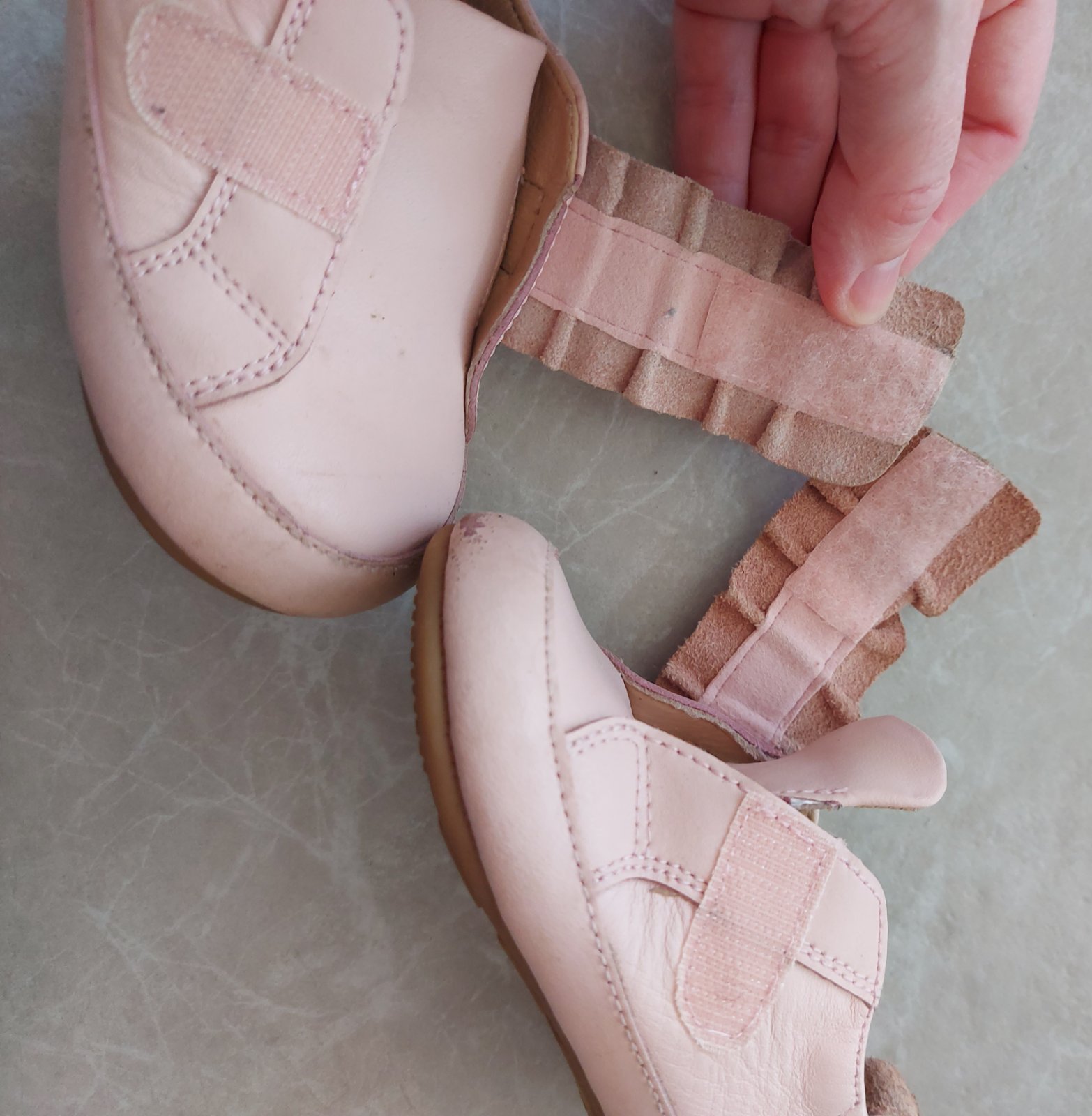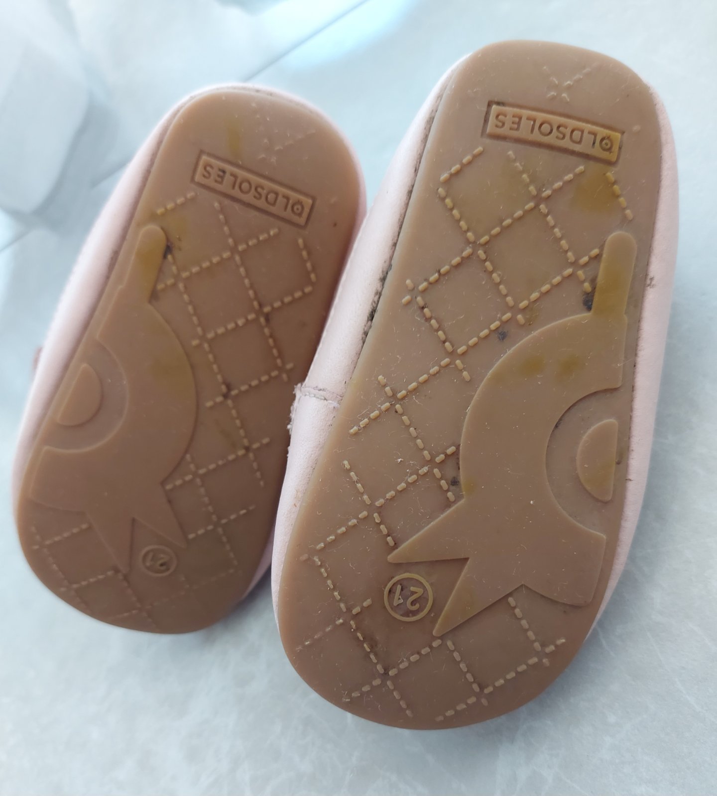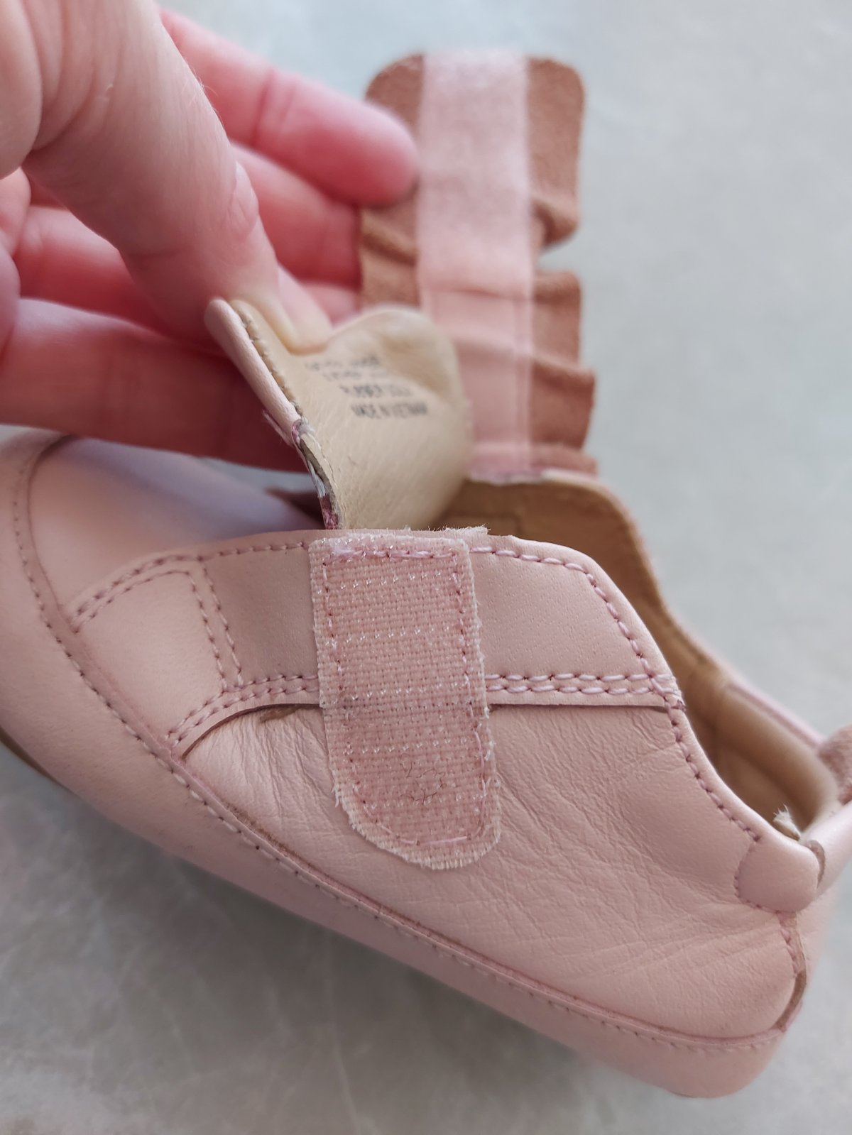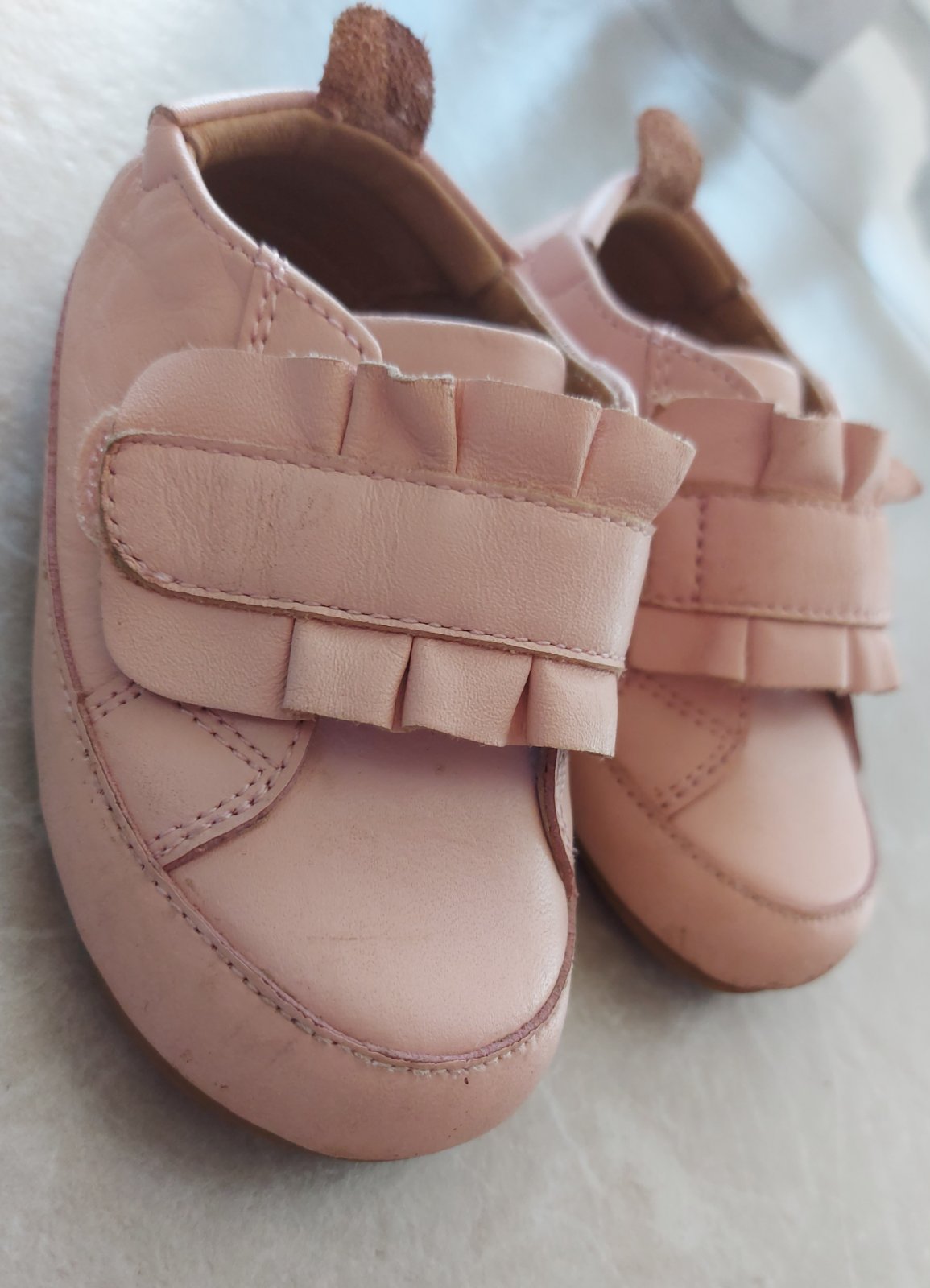 Pri takomto type capačkových topánočiek s gumenou podrážkou si treba všimnúť, aká je konštrukcia topánky - nemá okop a časť kože sa dotýka zeme. Preto je taká mäkká a poddajná, akoby dieťatko nemalo nič na nohách. Avšak pri takomto strihu sa nedá predísť ošúchaniu a po čase aj predratiu na tvrdých povrchoch a pri štvornožkovaní a hre na zemi.