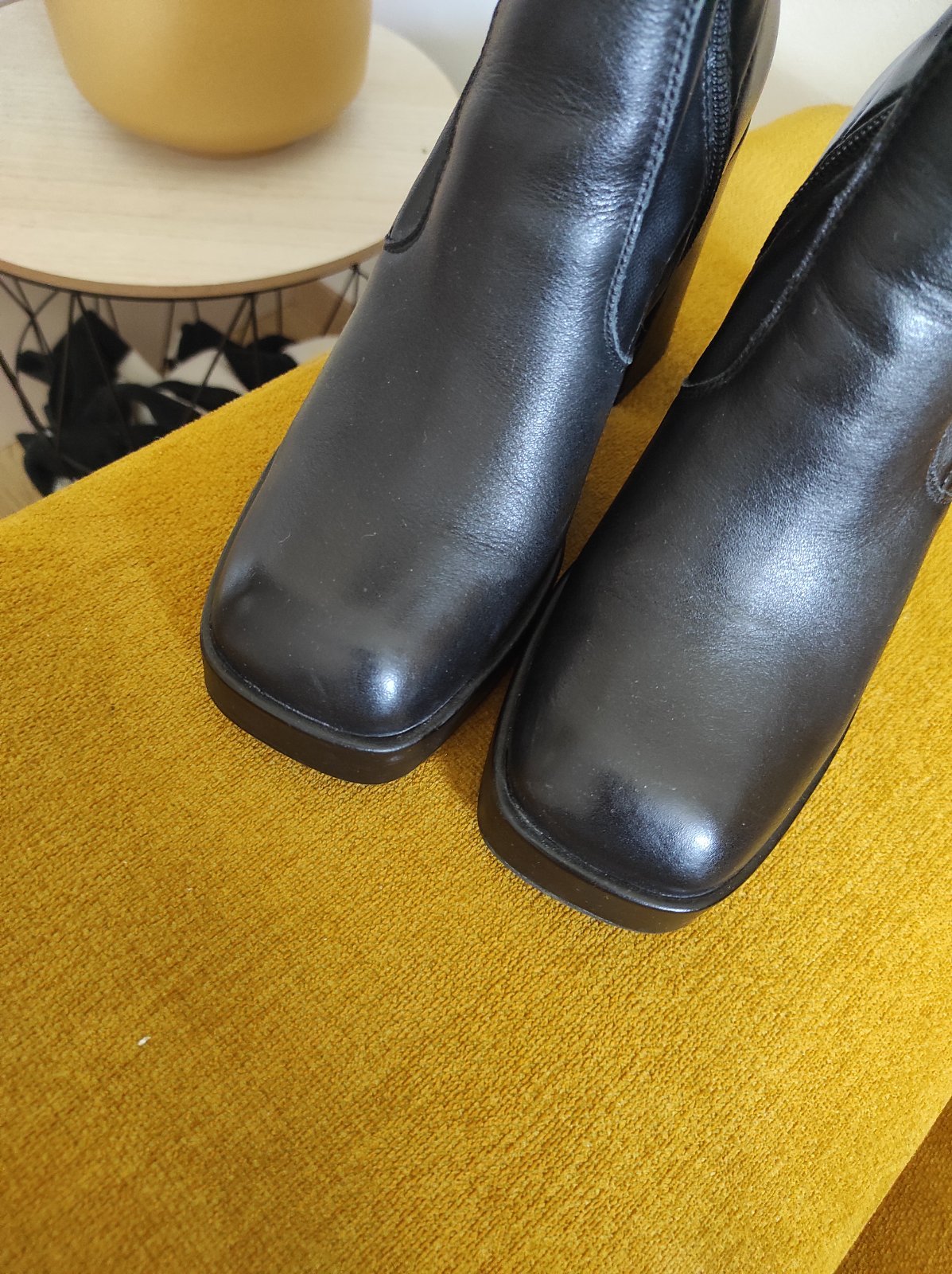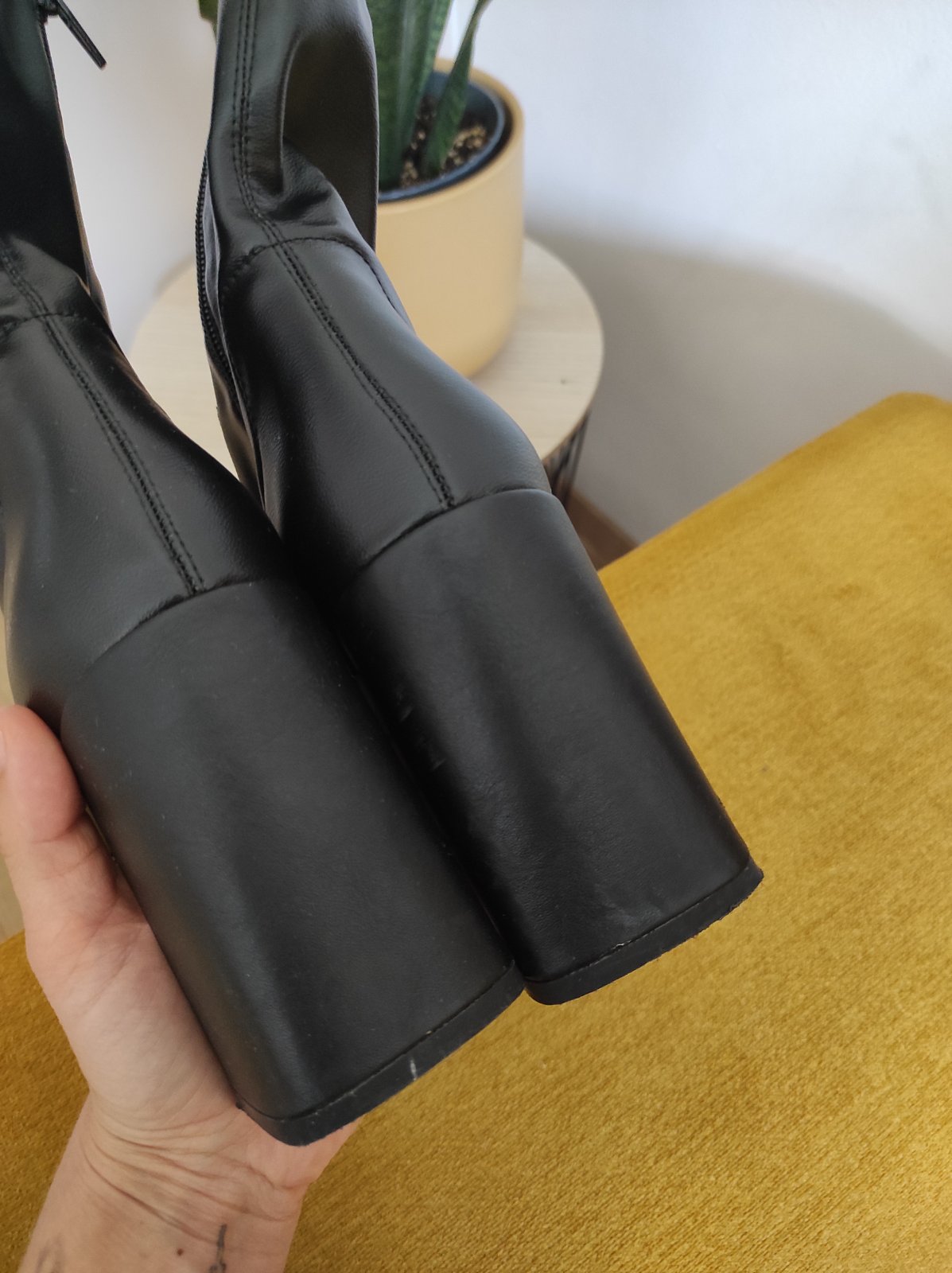 Topánky sú vo výbornom stave. Mala som ich na jednej akcii. Posúvam, lebo inak podpätky nenosím. Sú pohodlné nakoľko podpätok je hrubý a stabilný. Jemnučko zateplené (vhodné na jeseň). Na dĺžku nohy 21,5cm max. Pôvodná cena 70€.