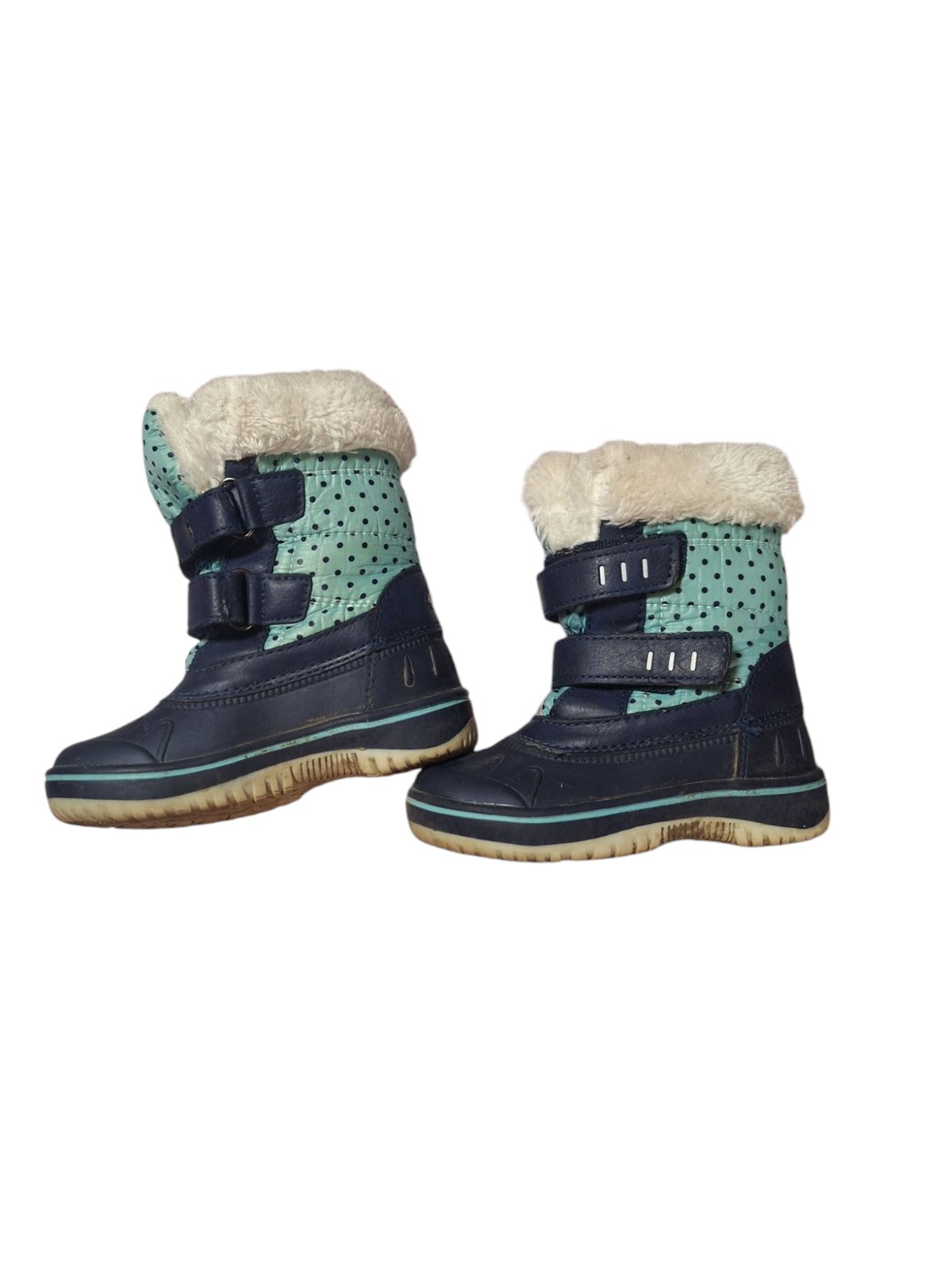 Detské zimné čižmičky. Zapínanie je na suchý zips. Výška je 16cm a vn. dĺžka je 14cm