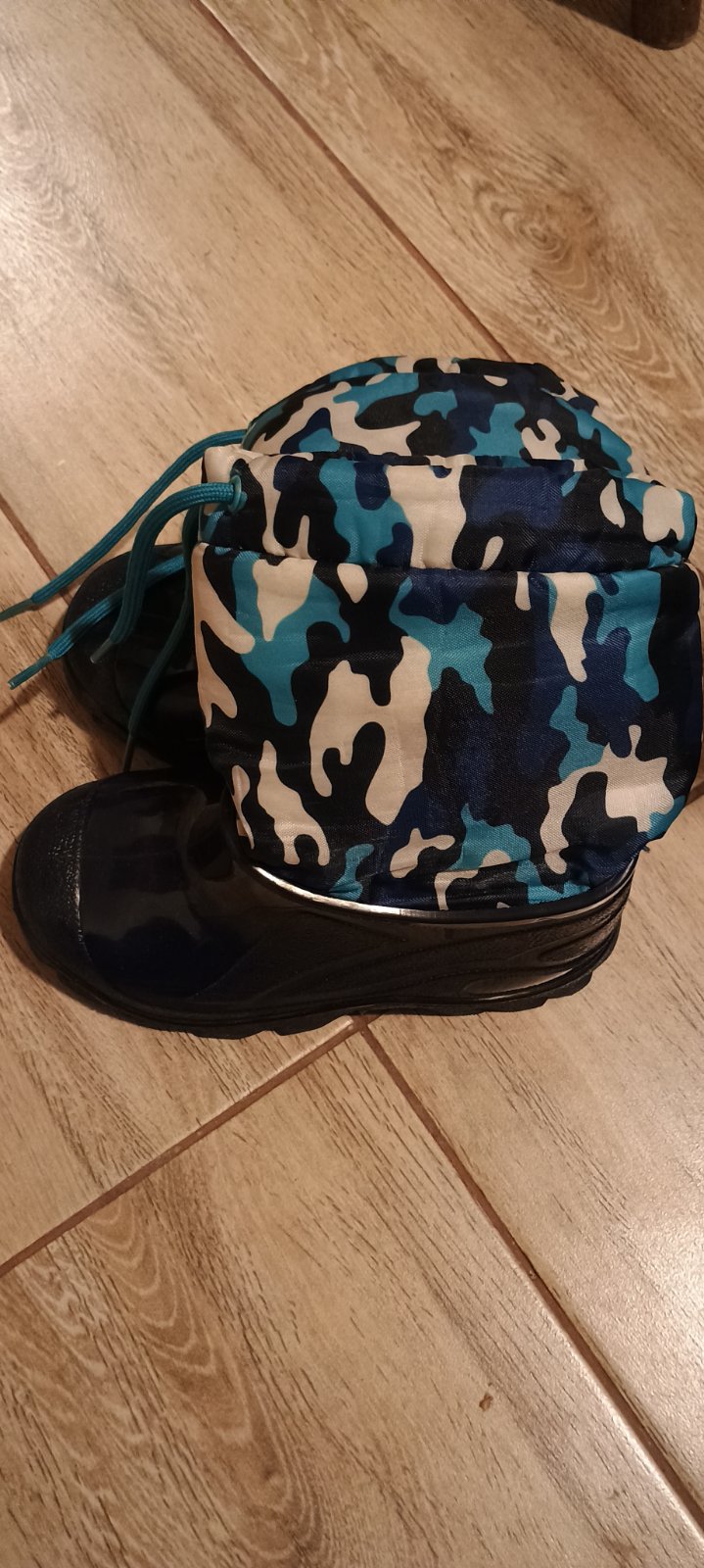 Nosené čižmy, jedna špička odratá, ale keďže sú tmavo modré, nie je to až tak vidieť pri nosení. Vn.dĺžka 16,5cm.