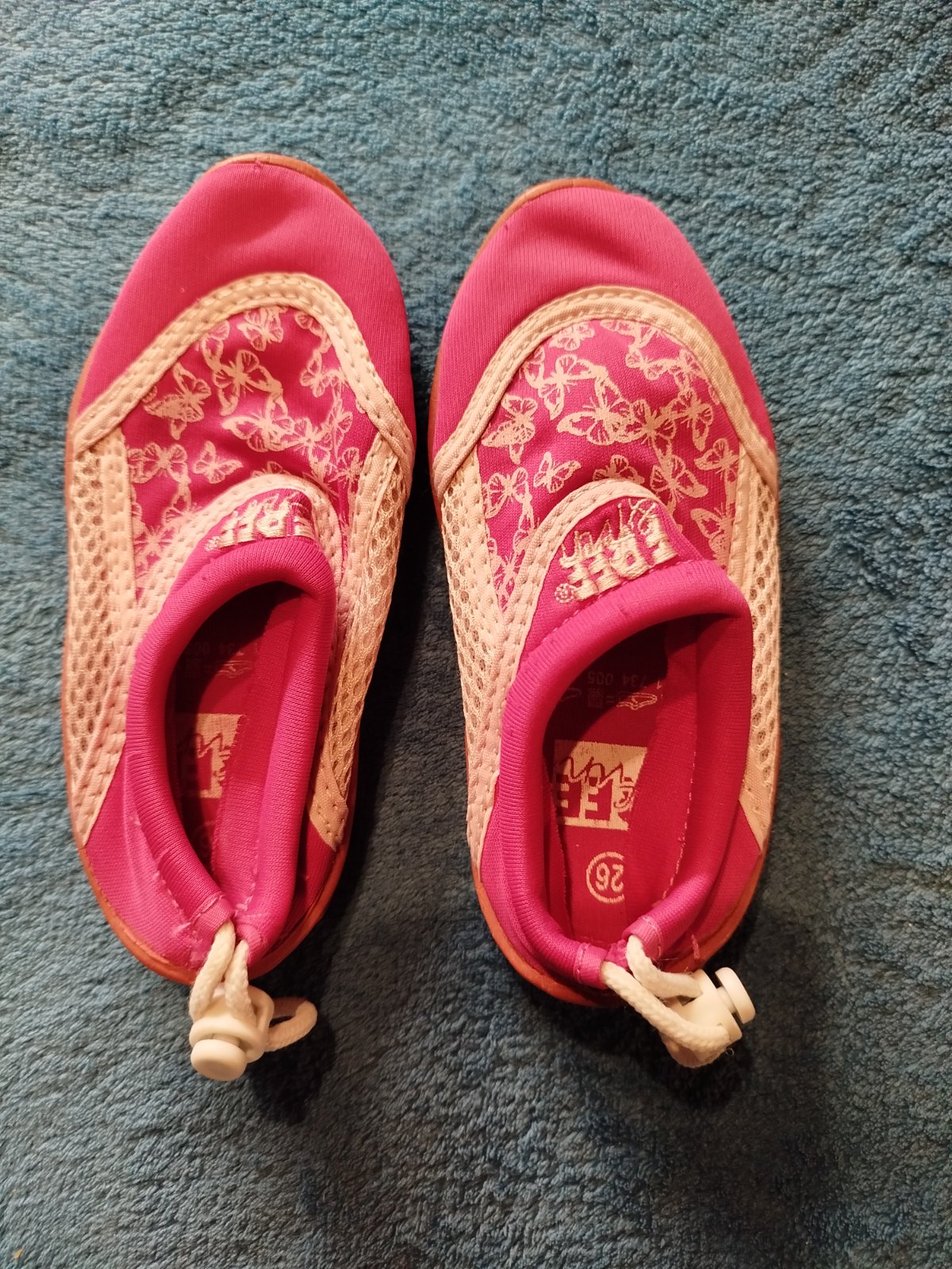 Predam iba odskusane topanky do vody. Nevyuzili sme.. velkost 26 farba taka ruzovo fialova s tyrkysovym. Predu na zatiahnutie. Dlzka vlozky 17cm. Na predaj aj 1x plavky Minnie sedia tak 98 A paw p...