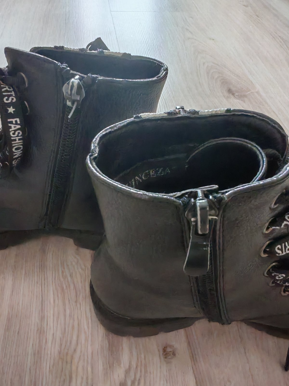 Krásne topánočky, majú jedinú chybičku, odtrhnutý zips na jednej topánke, viď foto. Vyriešili sme to alternatívou zipsu