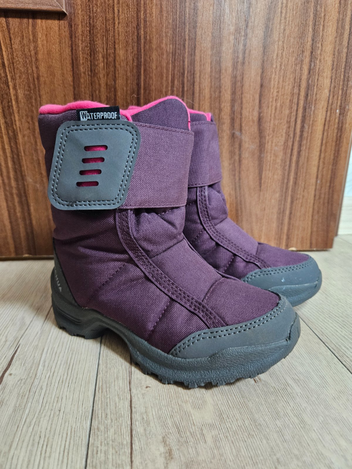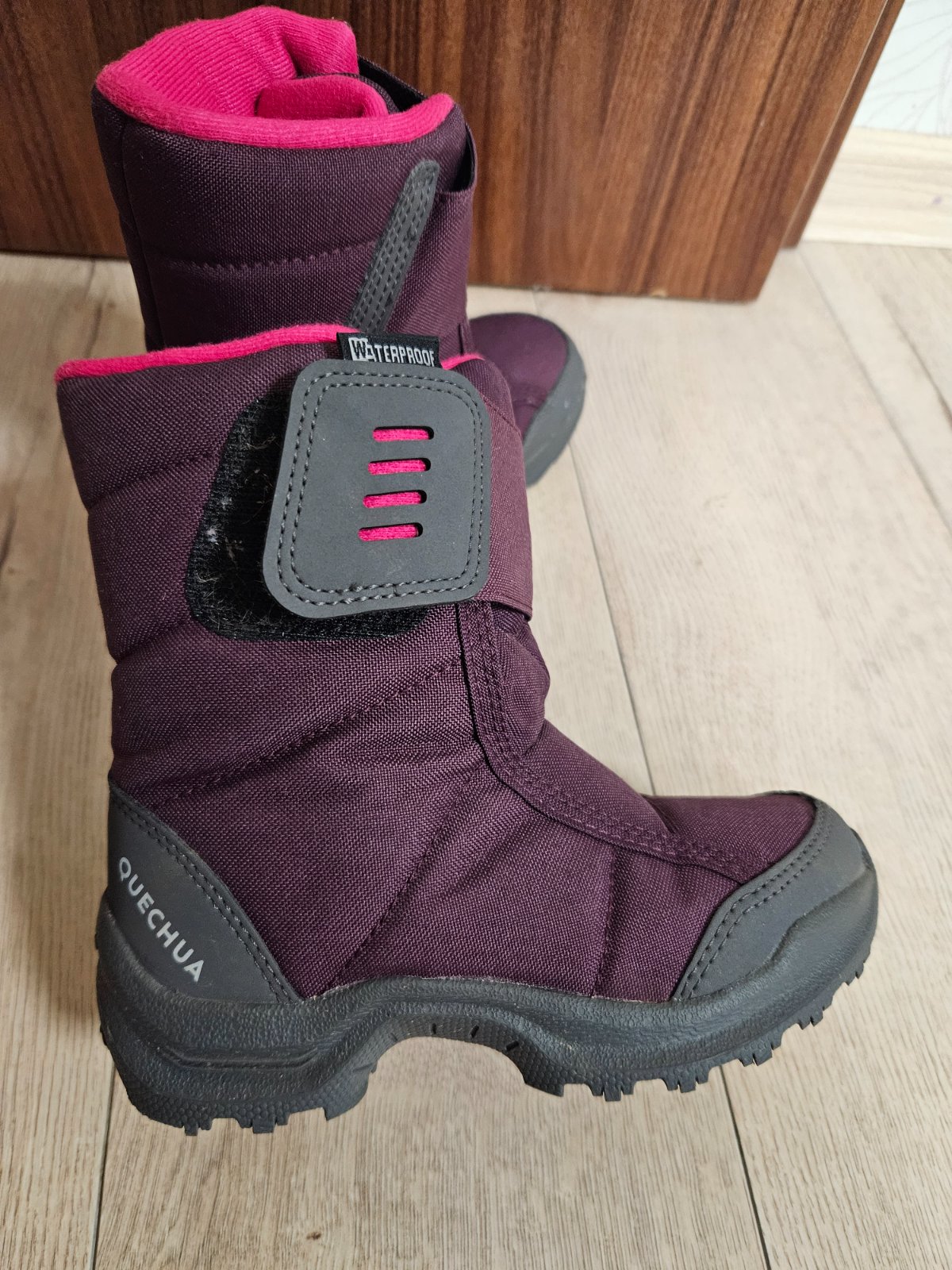 Predám dievčenské zimné čižmy, snehule, zateplené flísom, v dobrom stave, ako nové, značka Quechua (Decathlon), veľkosť 27, vnútorná dĺžka 16,5cm, napínanie je na suchý zips, sú vodeodolné, cena je 15€+poštovné