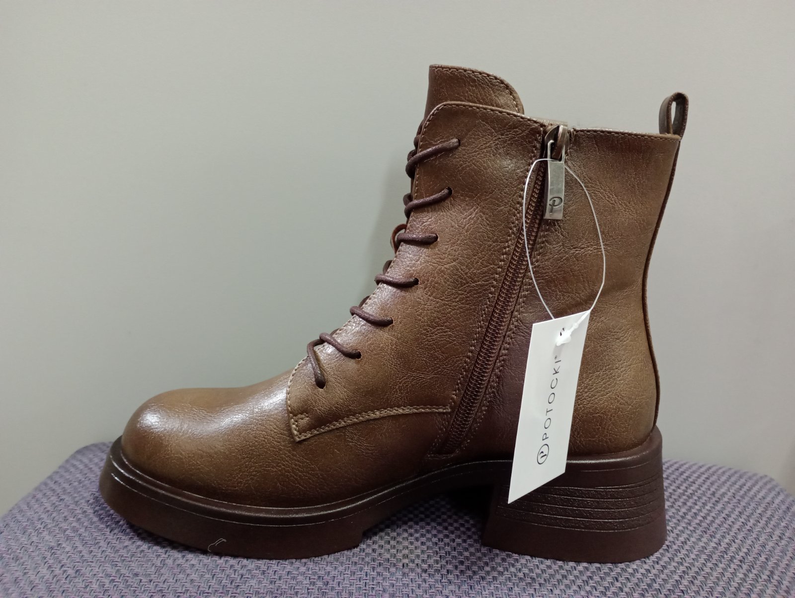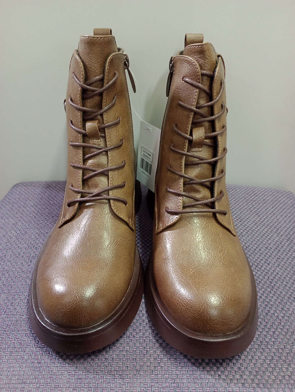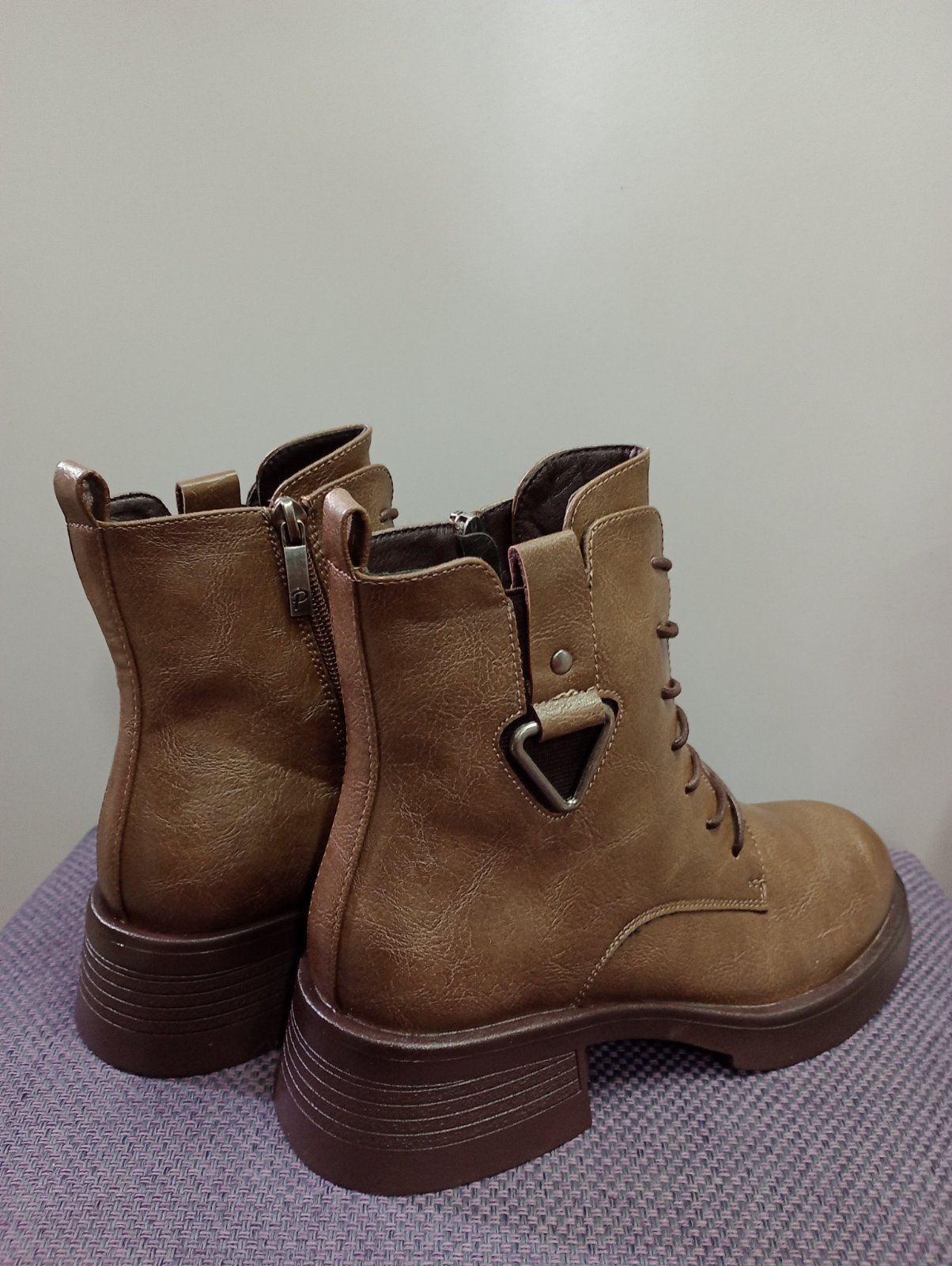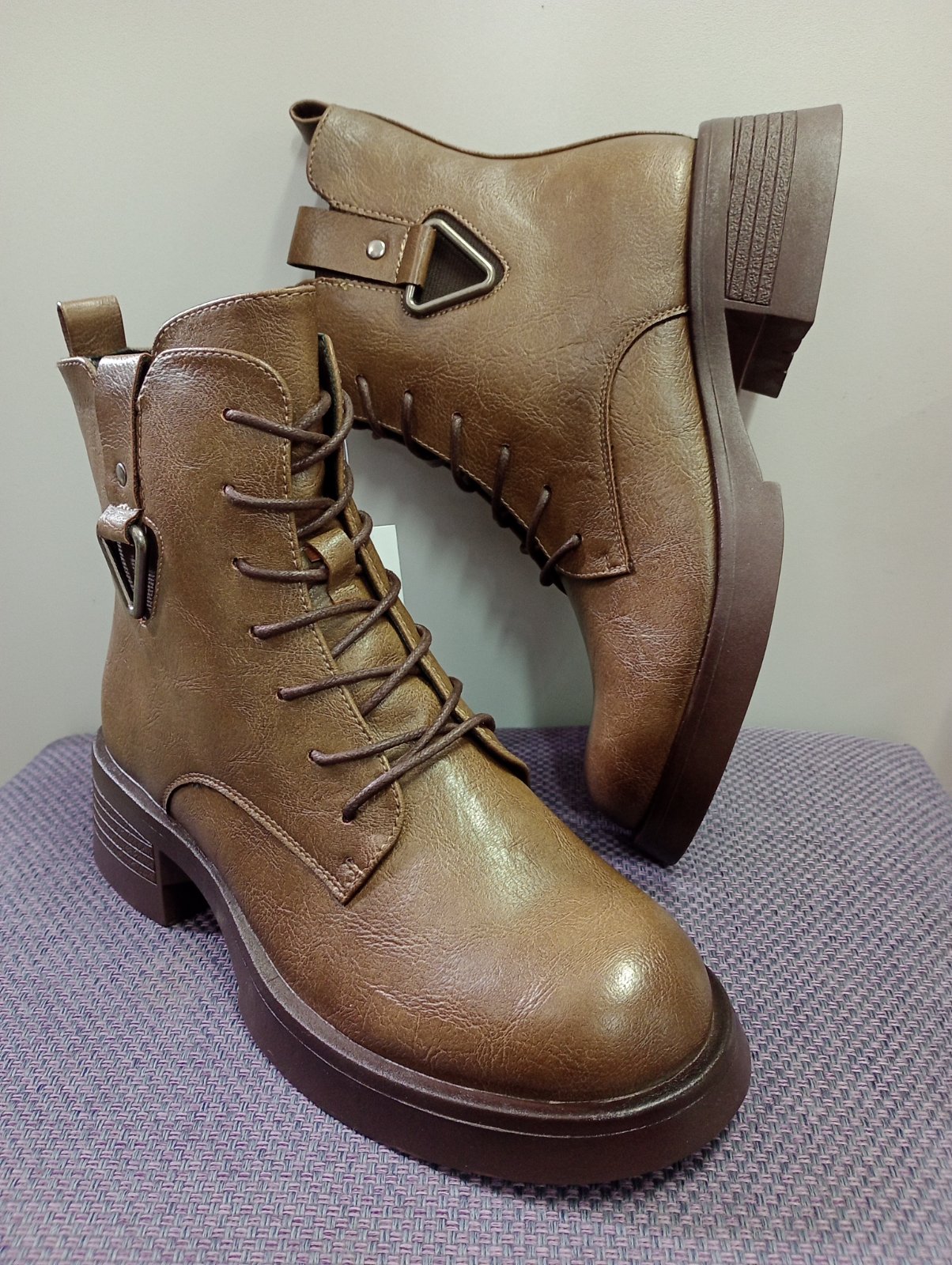 Hnedé čižmy na šnúrky s bočným zipsom.