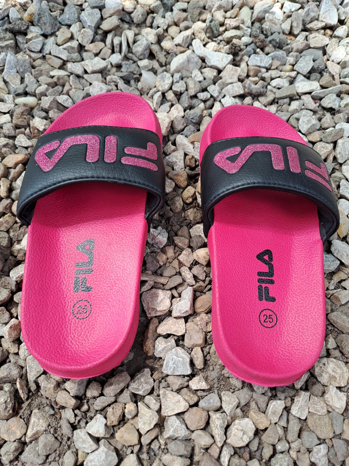 Šľapky fila lahučke veľkosť 25 cena za obe 5 € , osobne alebo poštou na dobierku neposielam.