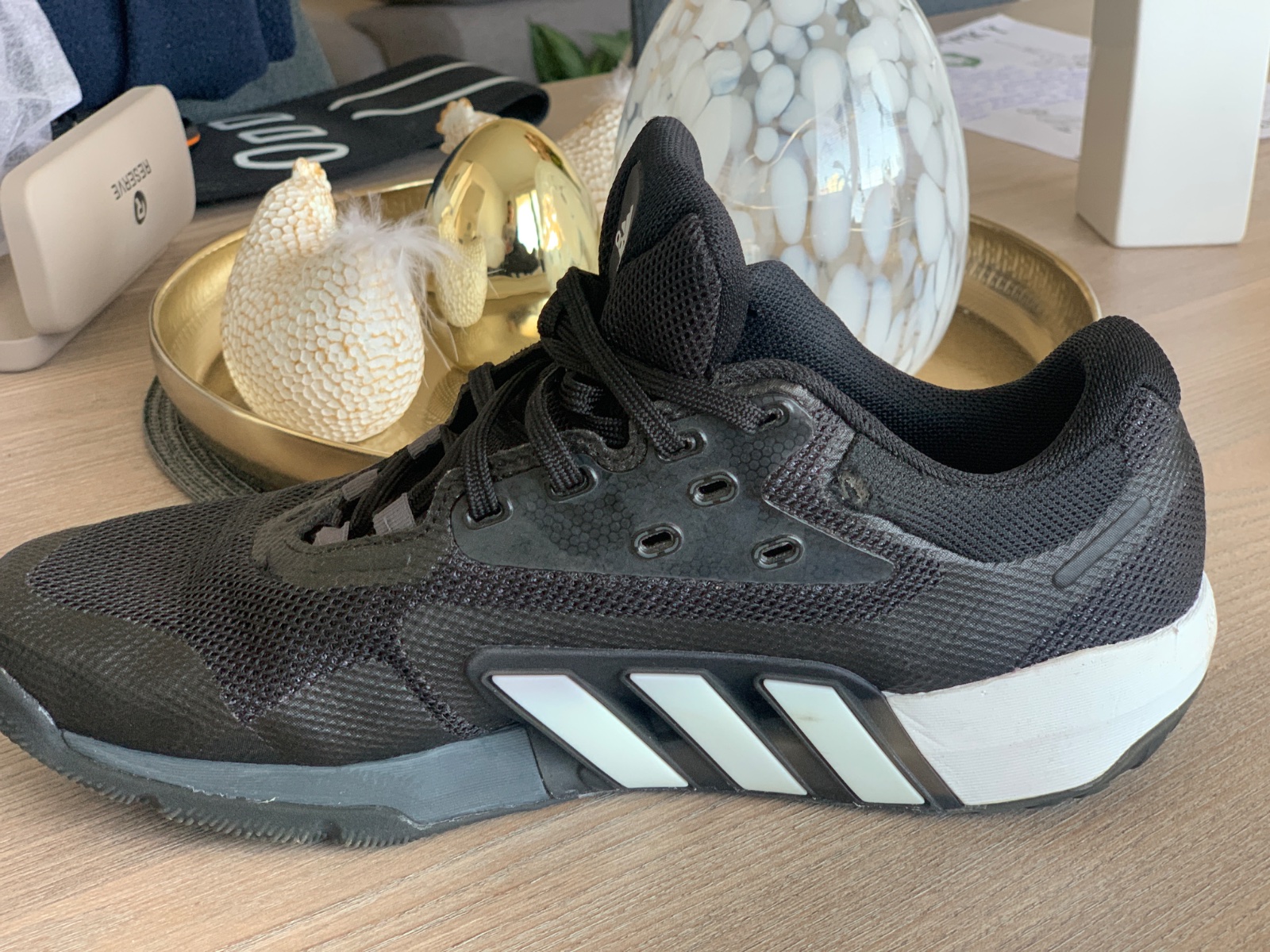 Fitness topánky adidas DROPSET TRAINER M, obuté max 5 krat. Top stav az na to, ze na pravej topánke z vnut.strany je nepostrehnutelná predratá povrchová látka - vid. Detail posledná foto, zohľadnené v cene.