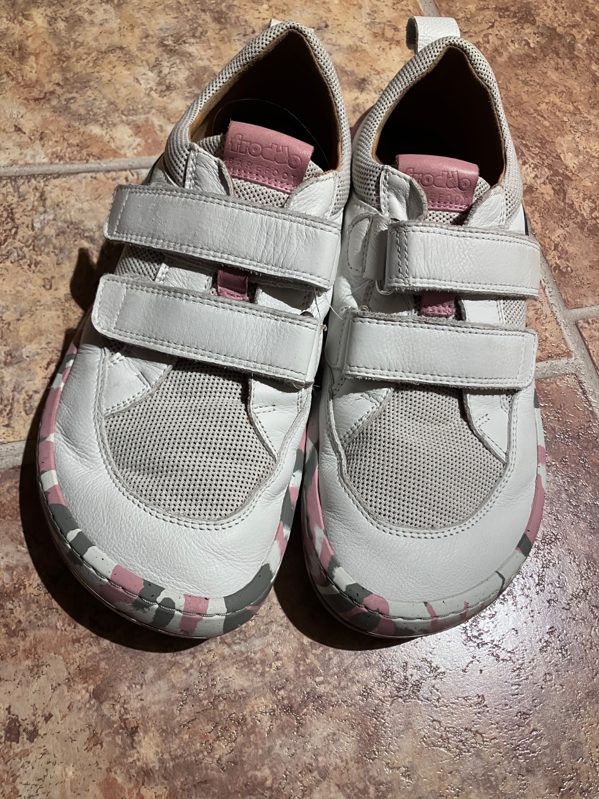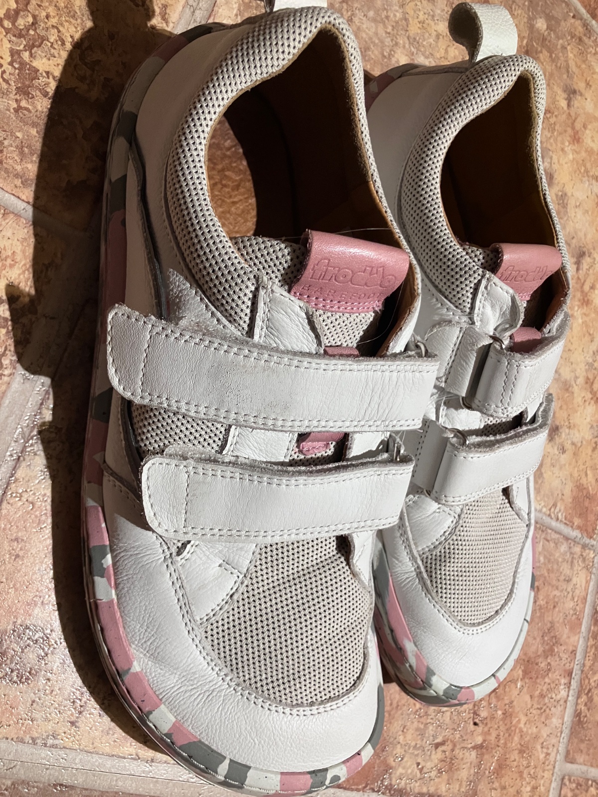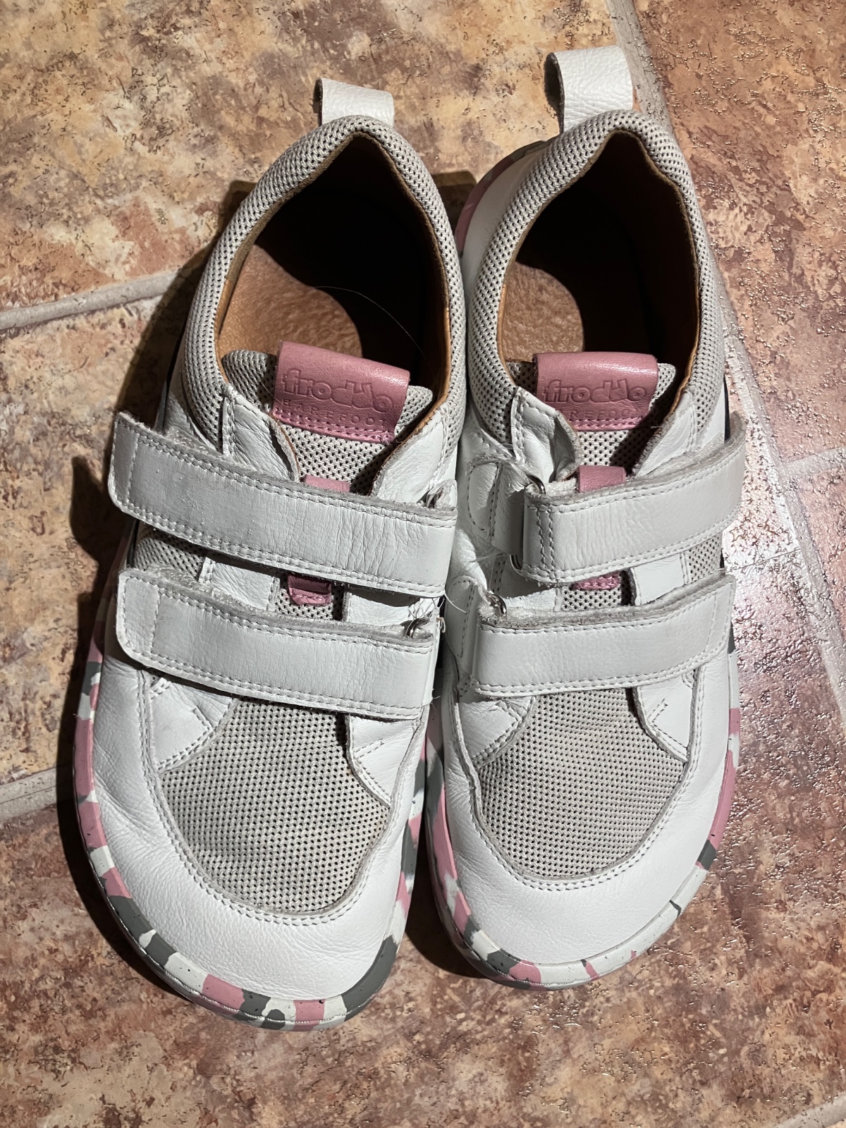 Barefoot textilní tenisky Froddo - BF D-Velcro White+ růžové