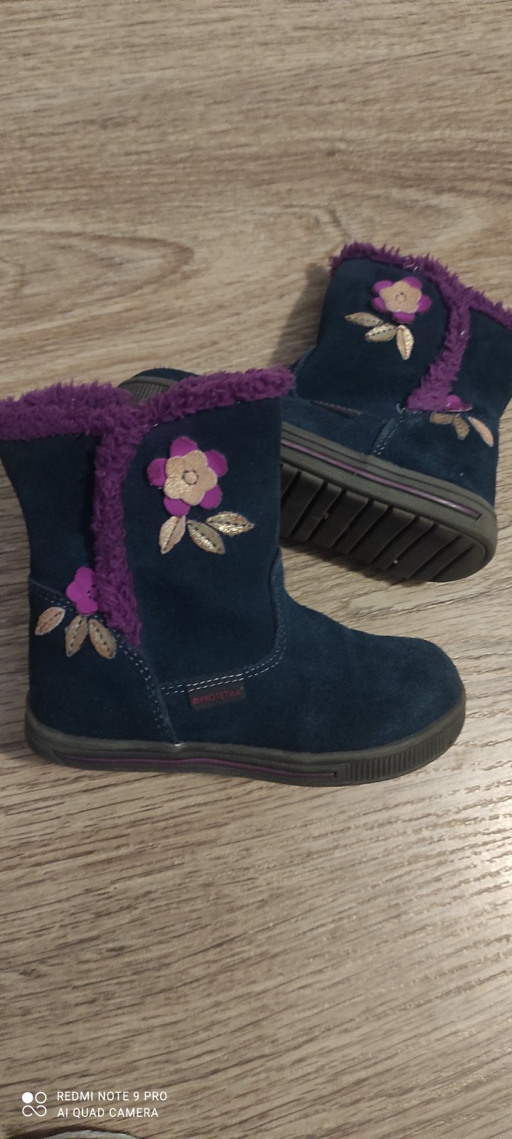 Detské zimné topánky vo výbornom stave. Mierne znaky nosenia na špičkách. VD 14 CM, VŠ 5 CM.