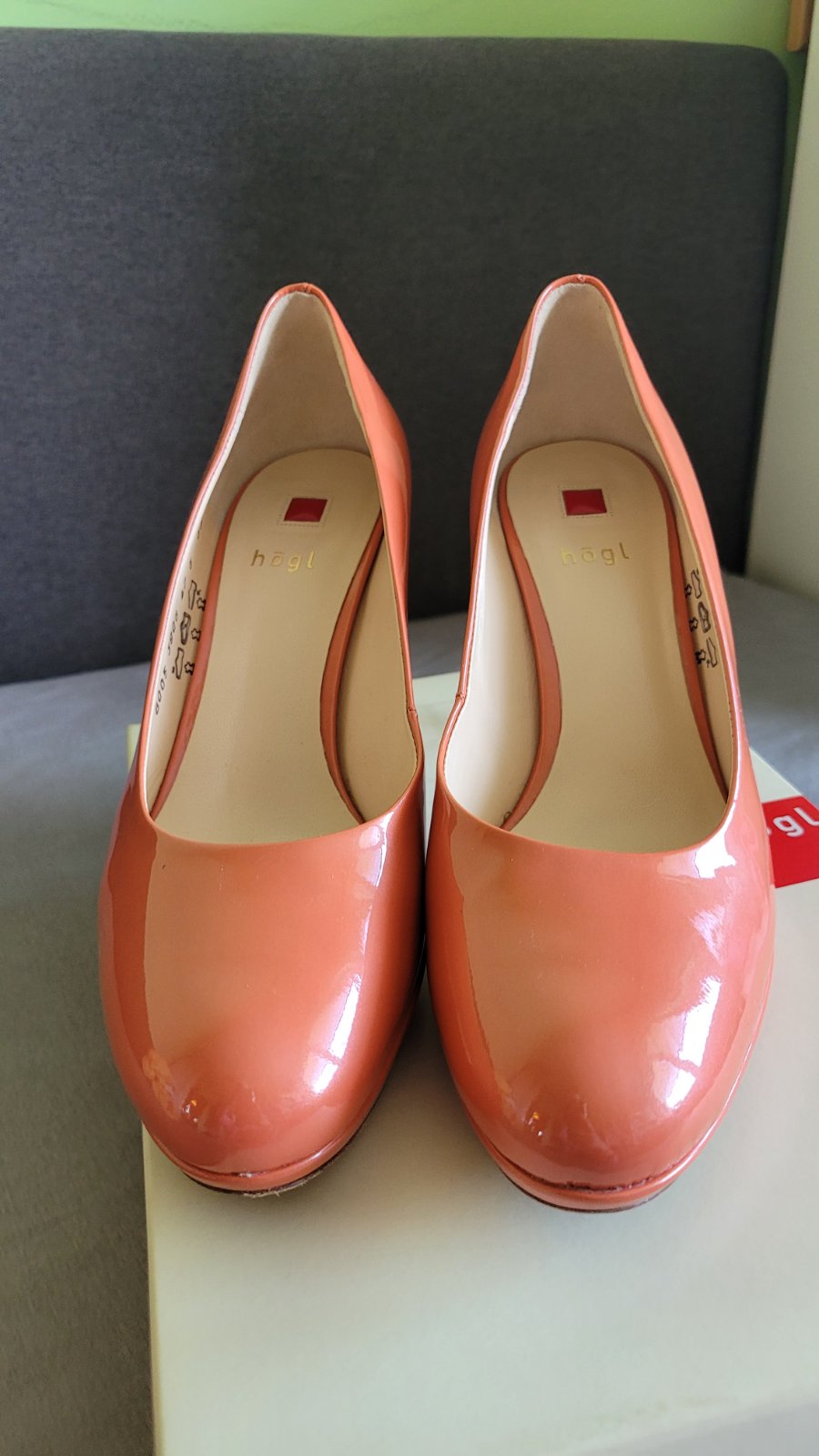 Predám lodičky zn.Hogl z lakovanej kože broskyňovej farby. Sú celé kožené, raz obuté. Veľmi sa mi páčili, ale sú mi úzke, takže sú ako nové.