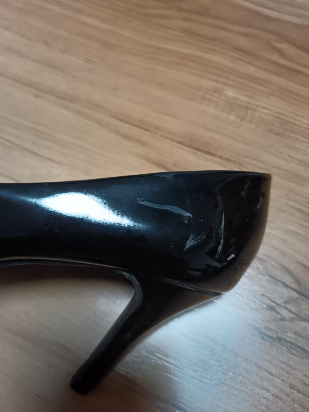 Dámske lodičky, veľkosť 37, stav nikdy nenosené, ale je tam chybička krásy, ktorá nie je veľmi viditeľná (vidieť na fotke).