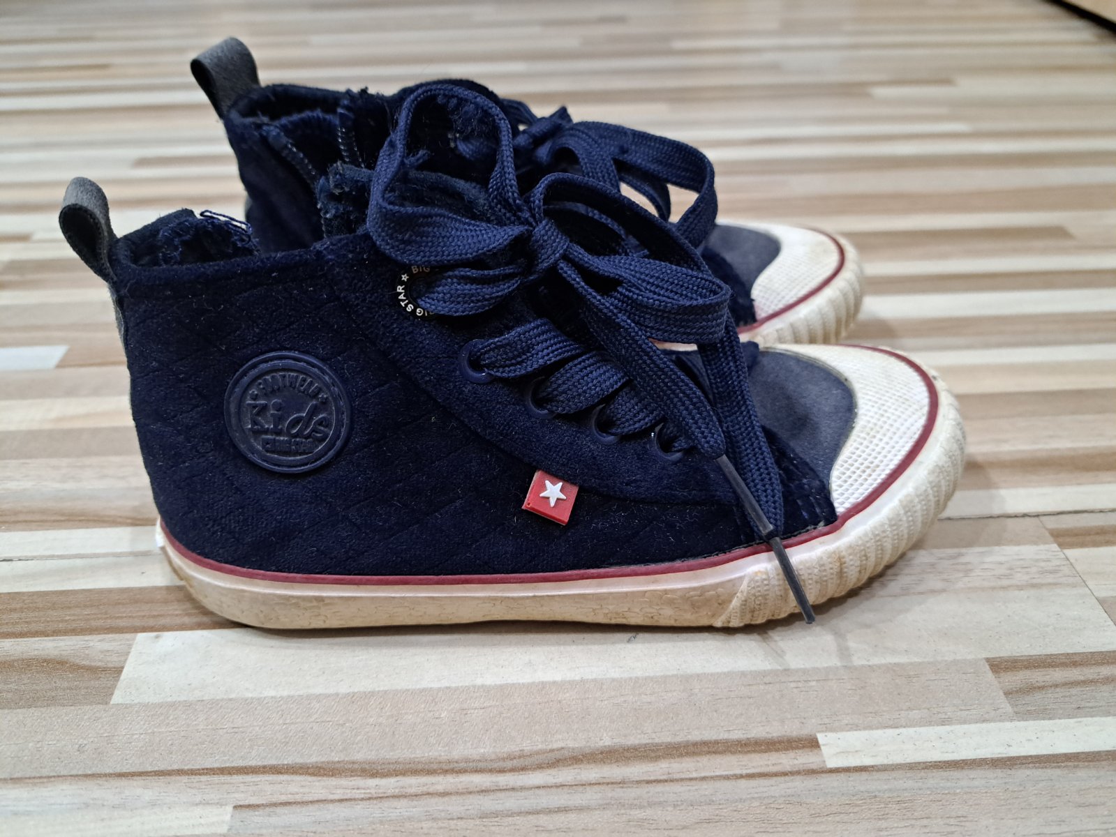 Veľ. 29. Štítok udáva VD 18, ja som meradlom +12 namerala VD 17cm. Nosené, bez funkčných poškodení, ale parádu už neurobia. No na dvor/do lesa/k babke stále super 😊 Podrážka stále v peknom stave. ...