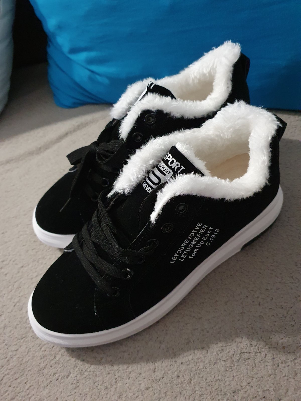 Nikdy nenosené tenisky, s kožušinou vo vnútri. Písaná je veľkosť 40 ale podľa rozmeru tipujem tak veľkosť 37 ak nie aj 36.. V prípade záujmu premeriam