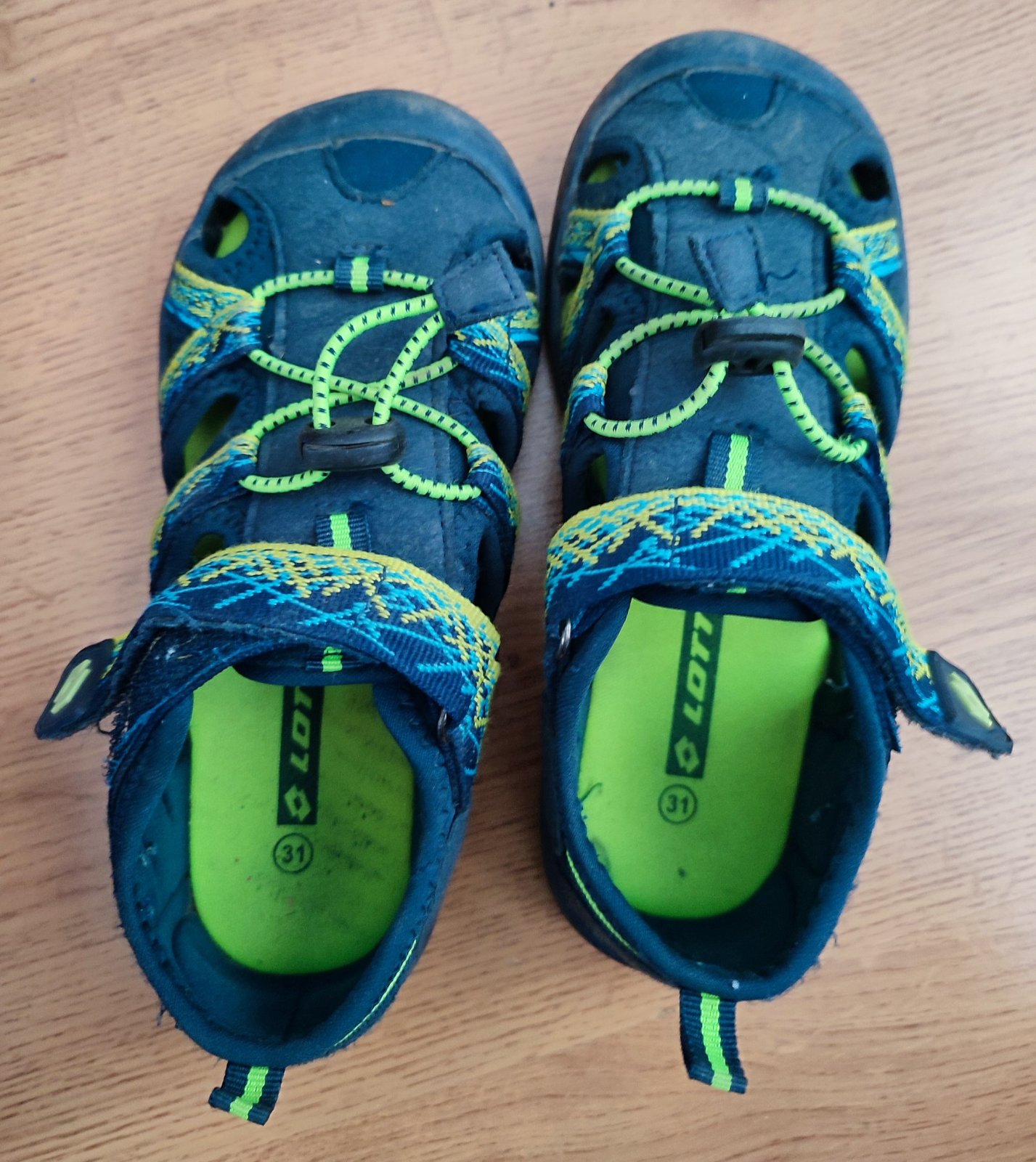 Predám málo nosené sandálky Lotto veľkosť 31. Výstelka je koža, sandálky pekne držia na nohe a veľmi pekne ukážu na nôžke. Sú málo nosené. Vnútorná dĺžka 21cm. Boli sme tak spokojný že sme ich mali...