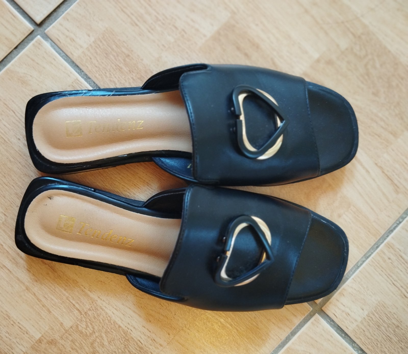 Letné nasúvačky...si zlatou aplikáciou v tvare srdca. Obuté jeden krát. výška opätku 2 cm.