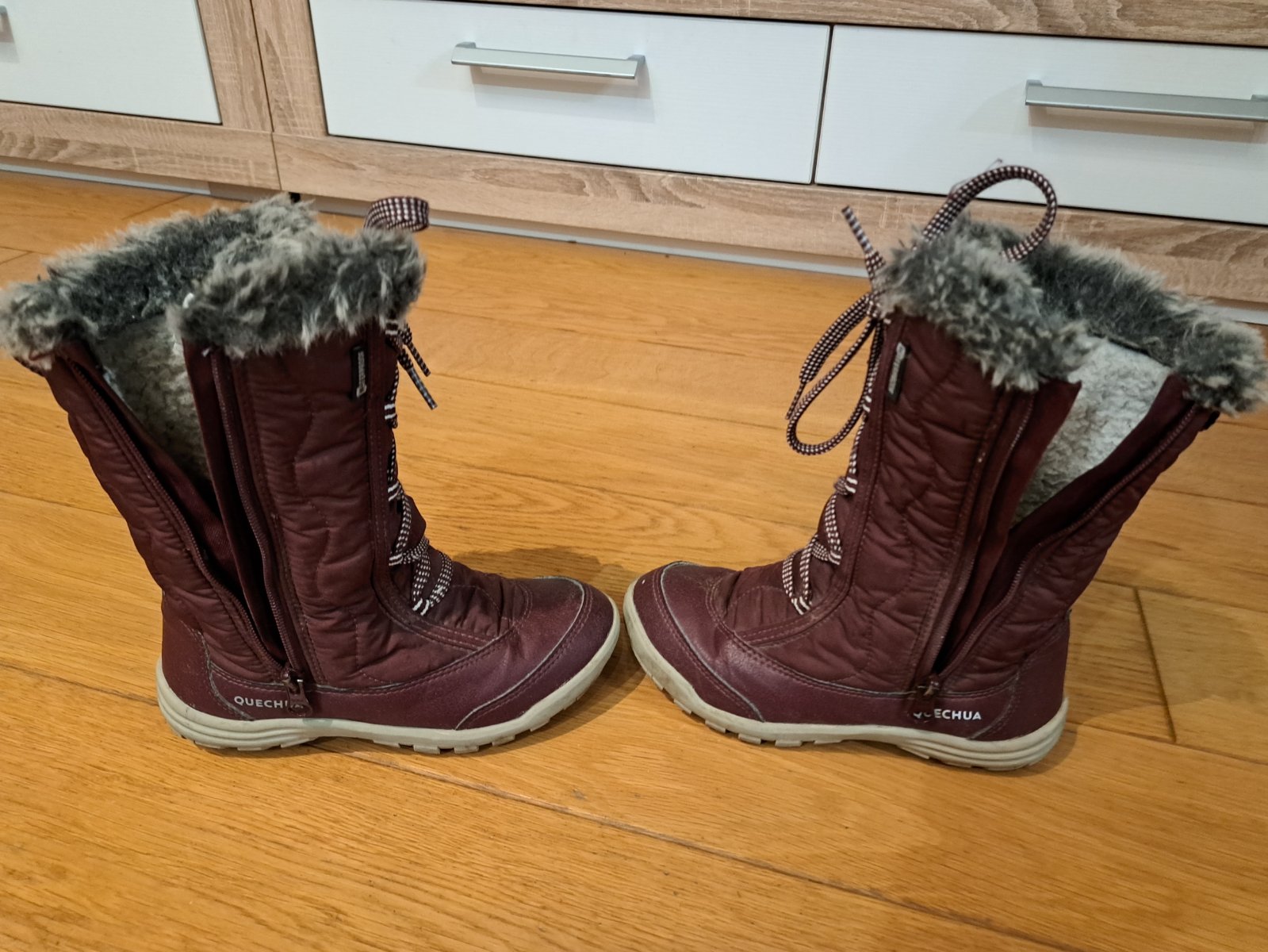 Veľmi zachovalé, teplé, nepremokavé,nosené jednu sezónu,(už malé) jednoduché obuvanie PC 25€