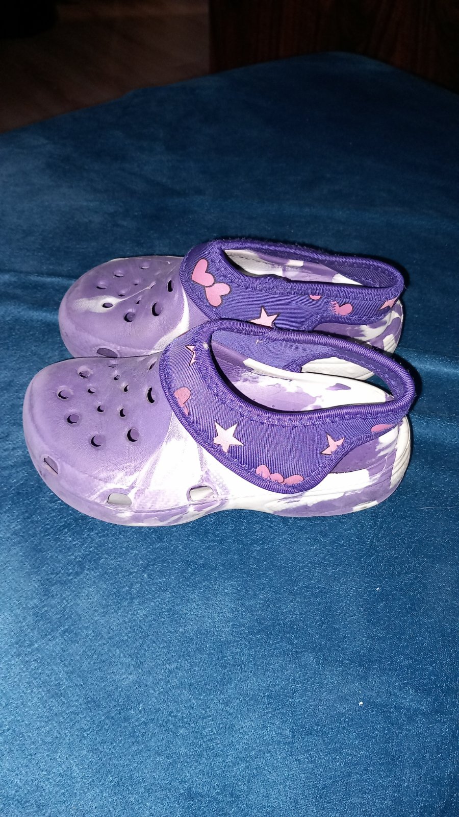 Dvoje gumené fialové topánky k vode alebo len tak na leto.