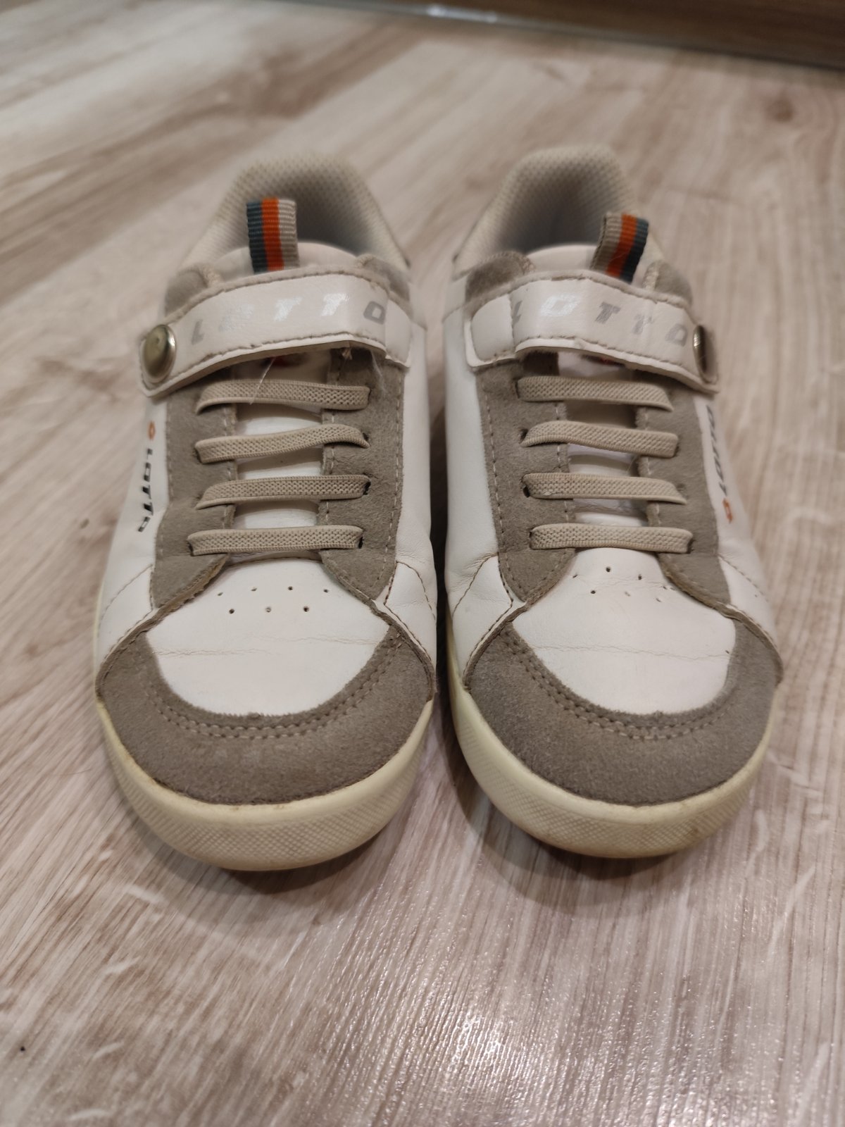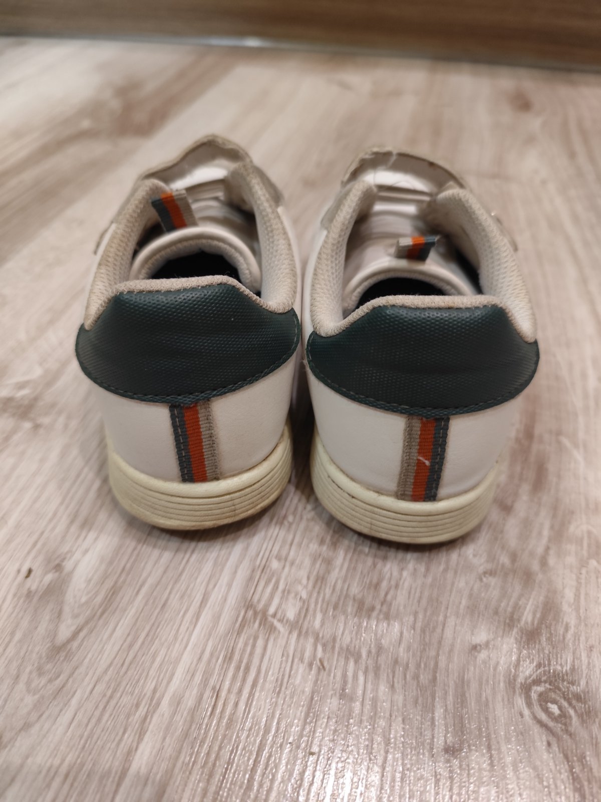 Nosené, ale neokopané, zvonku stále pekné biele, vnútri látka už mierne zašednutá. Originál suchý zips vymenený za cvoku, plne funkčné. Odporúčam na širšiu nožičku.