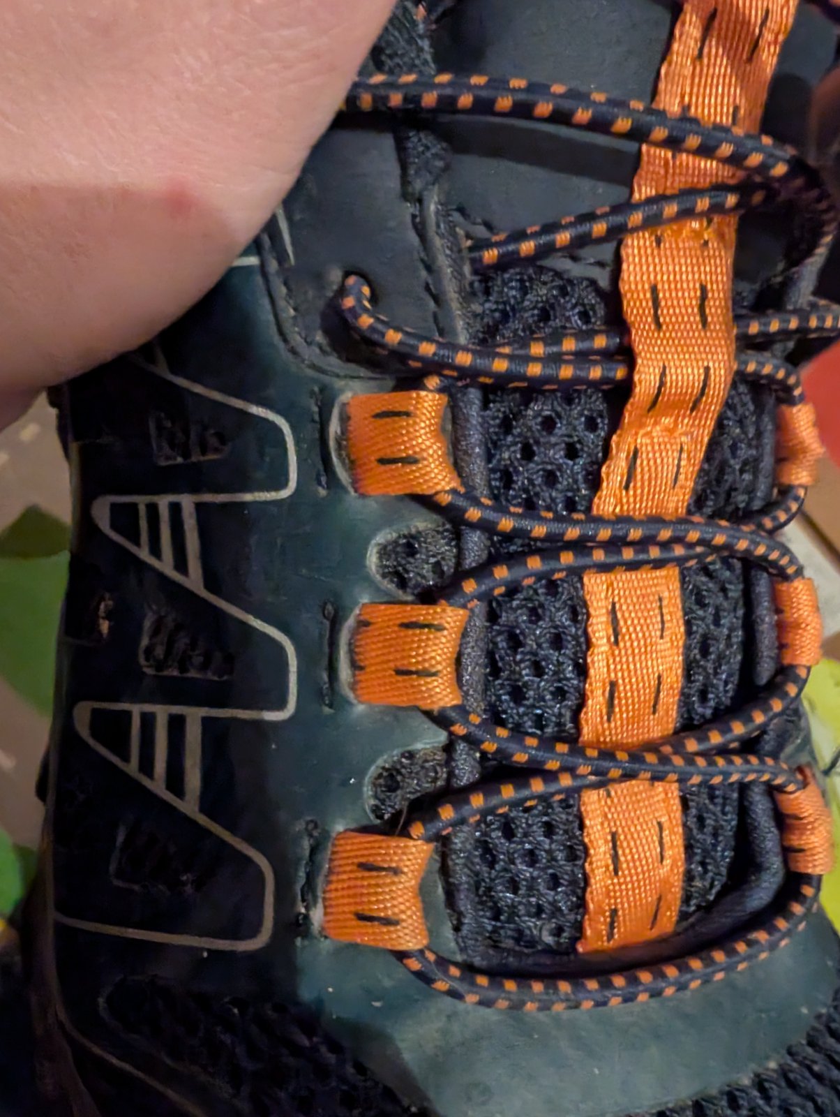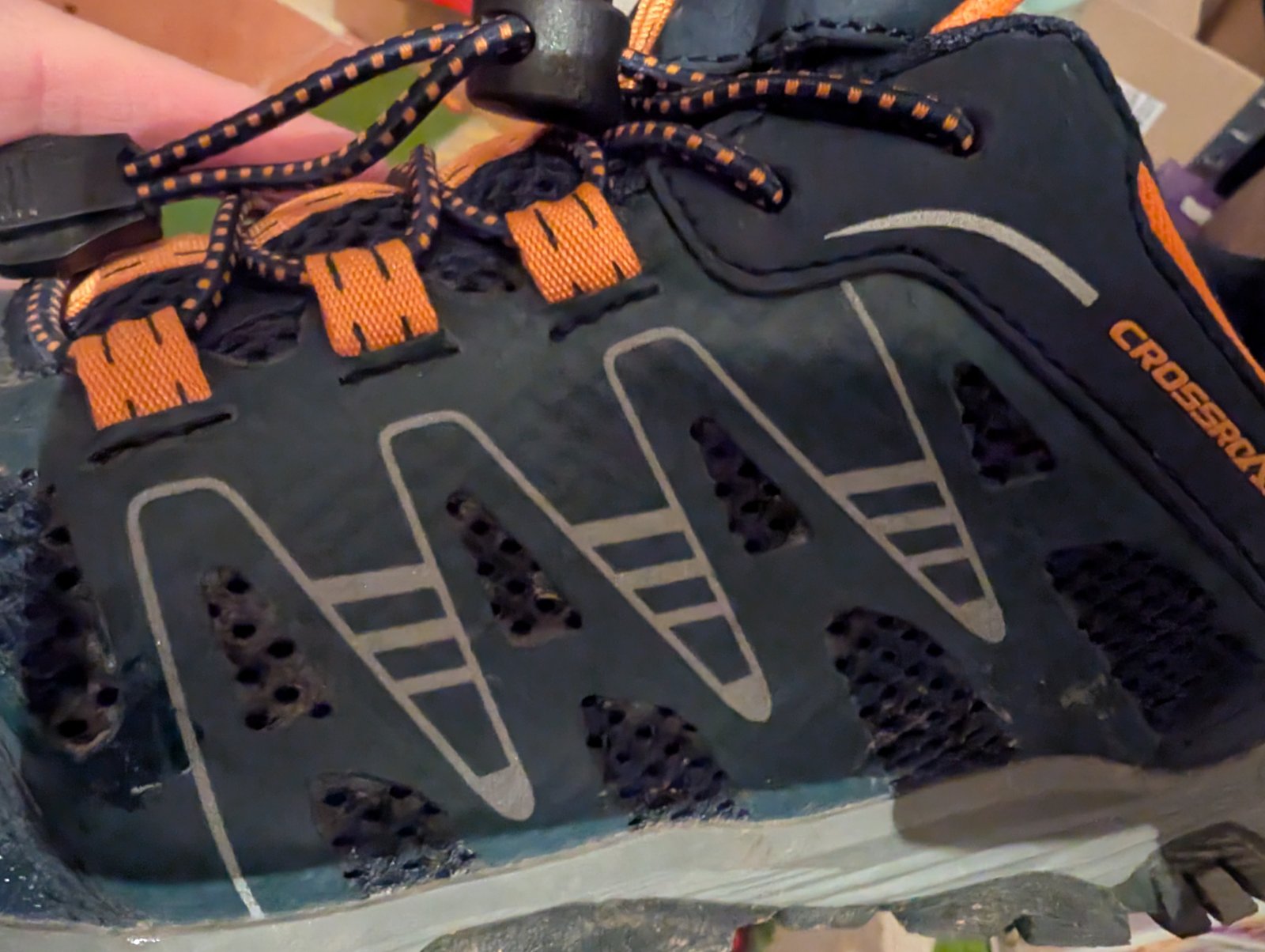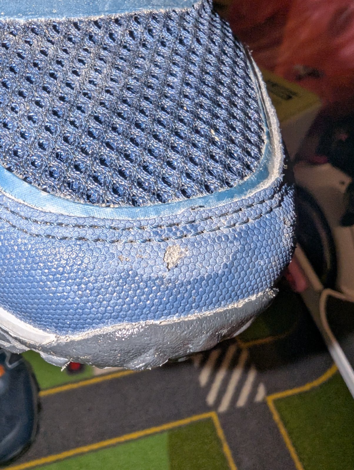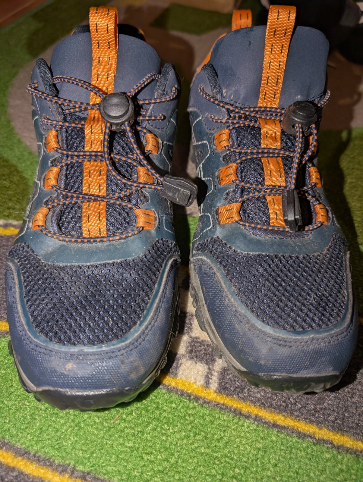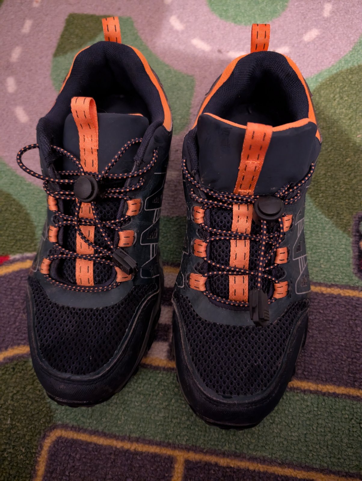 Nosené trekové tenisky, na fotkách ešte nie sú dobre očistené, to doriešim. Na jednej spredu je ošuchnuté miesto, viď foto. Podľa potreby premeriam.