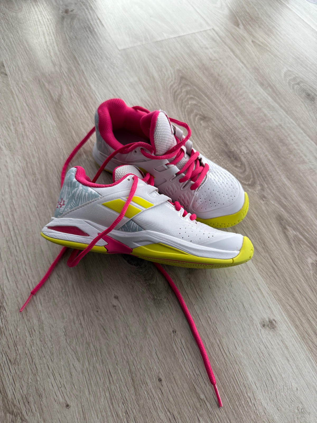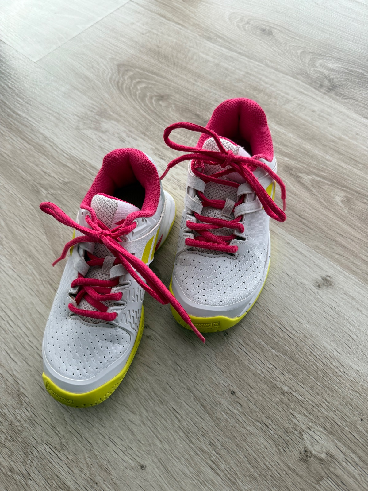 Predám topanky po dcérke vhodne na tenis zn. Babolat. Zaviazovanie majú na šnúrky a sú vo veľkosti 31. Popis; Detaily produktu