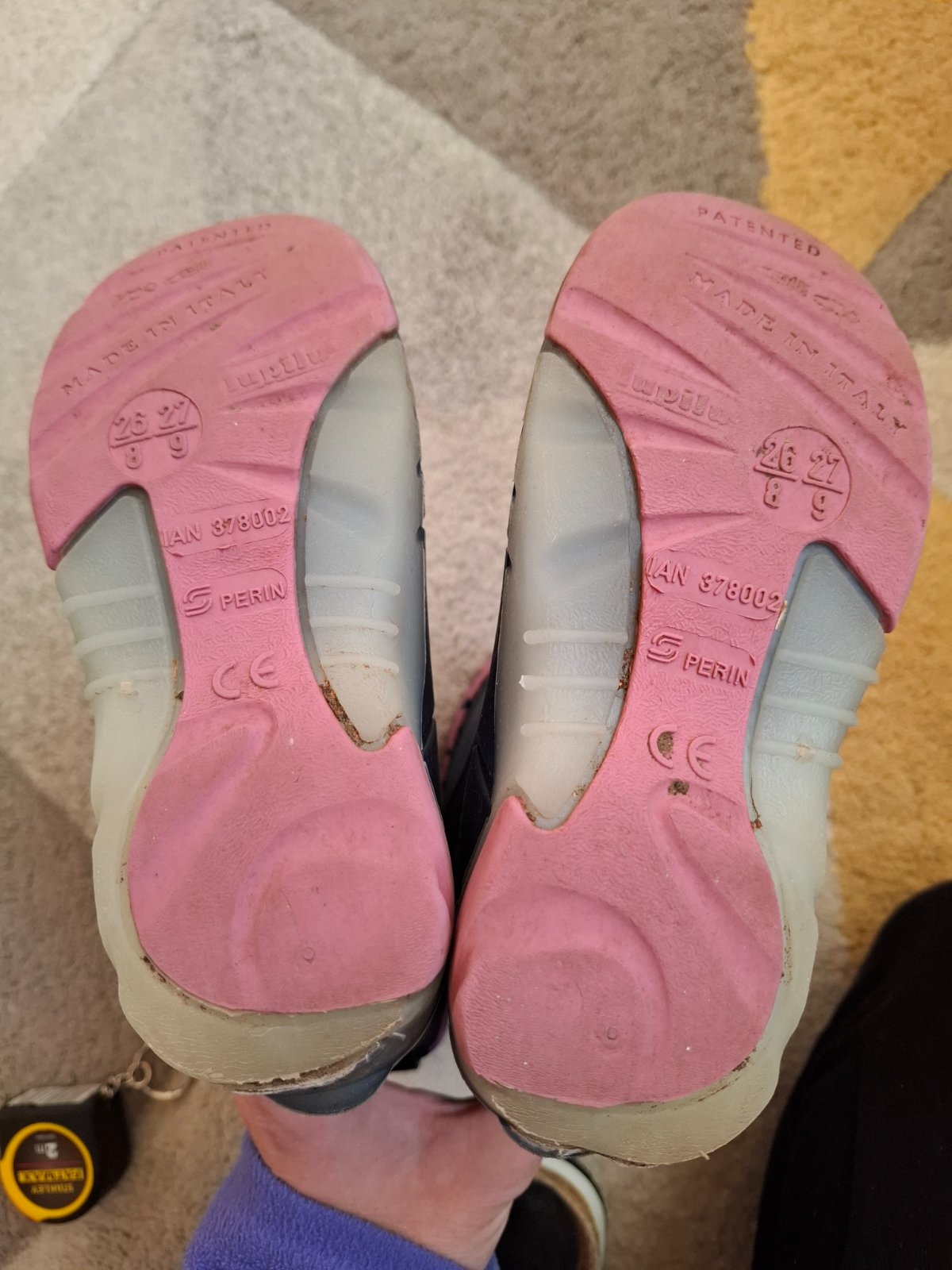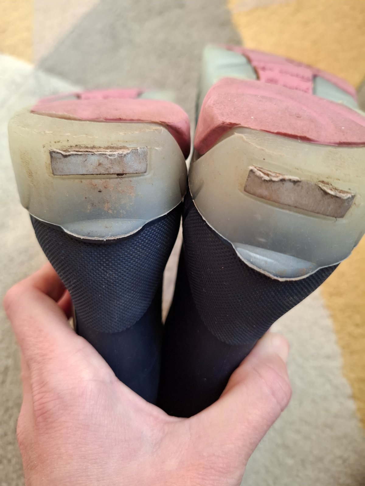 Nosené gumaky jednu jeseň. Velmi zblizka vidiet smuhy ale popravde na fotke vyzeraju horsie ako v skutocnosti. Nafotene. Velmi pekne zachovalé. Funkčné. Blikajúce obidve. Zateplene. Vložka sa dá vybrat