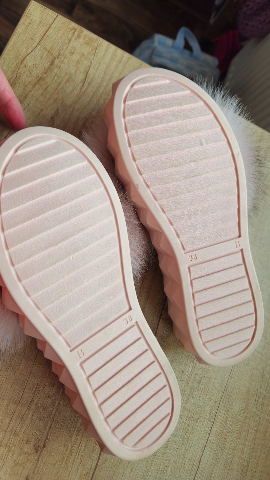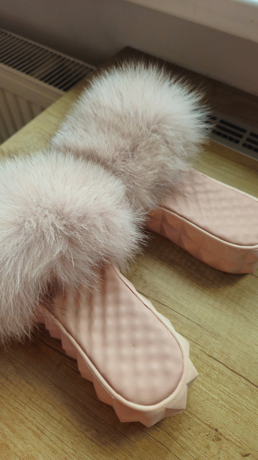 Krásne nové šlapky veľkosť 38.prava kožušina z líšky.na platforme..dovoz z dovolenky v Turecku..nesadla veľkosť. Pôvodná cena 70e