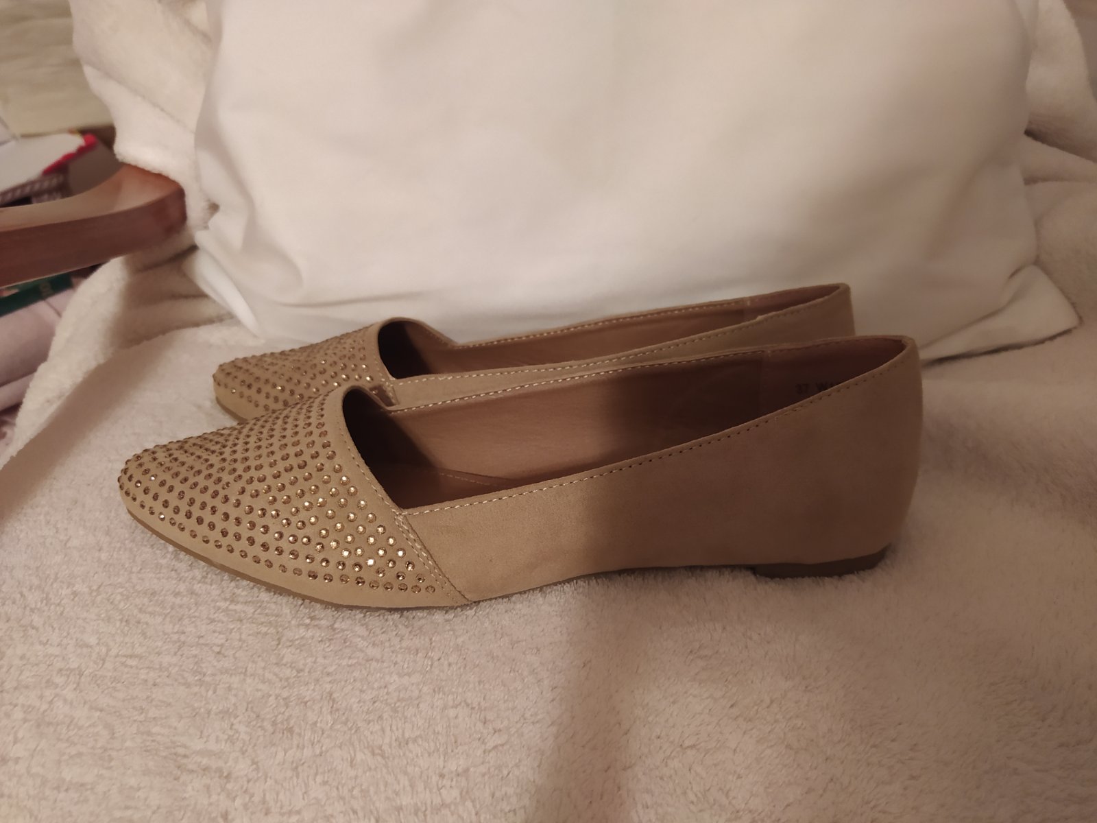 Balerínky Zaxy, veľkosť 37, vnútorná dĺžka 23 cm. Béžovozlatá kombinácia. Pohodlné, mäkké, málo nosené, jemné farebné nedostatky nafotené.