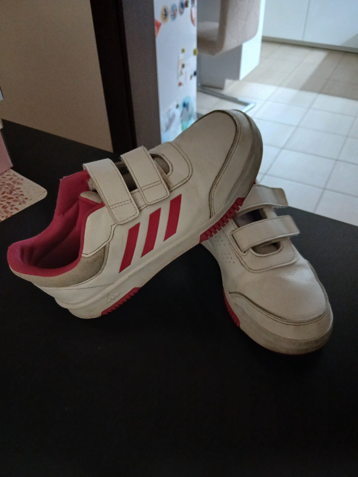 Predam biele Adidas tenisky 37,5 (pisu 38, no su na nohu 23,5-24cm dlhu, preto je to podla mna mensia velkost.) Su nosene malo a nosenie vidiet v podstate len vo vnutri topanok na stielke a na latk...