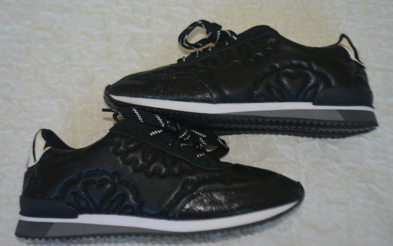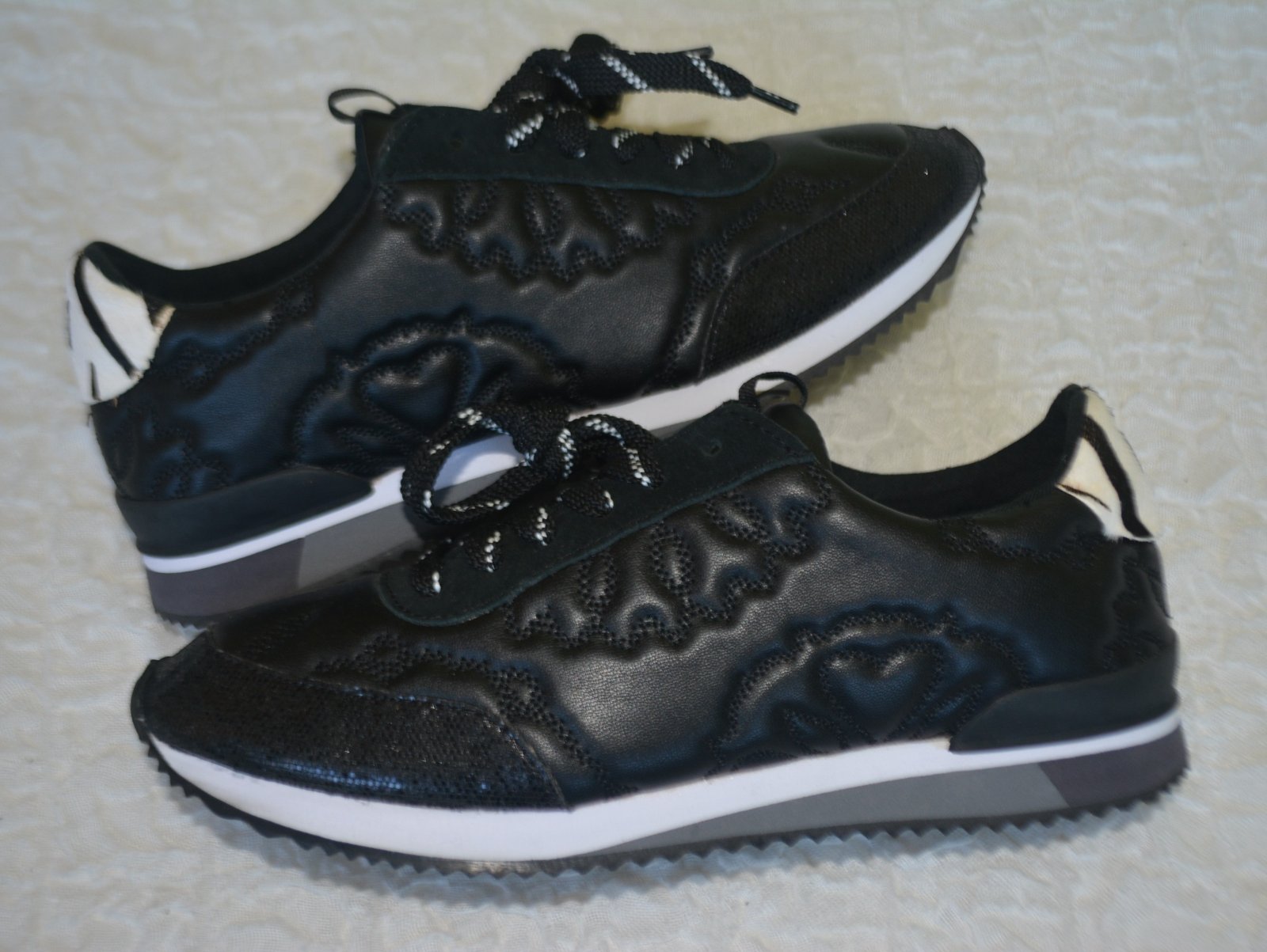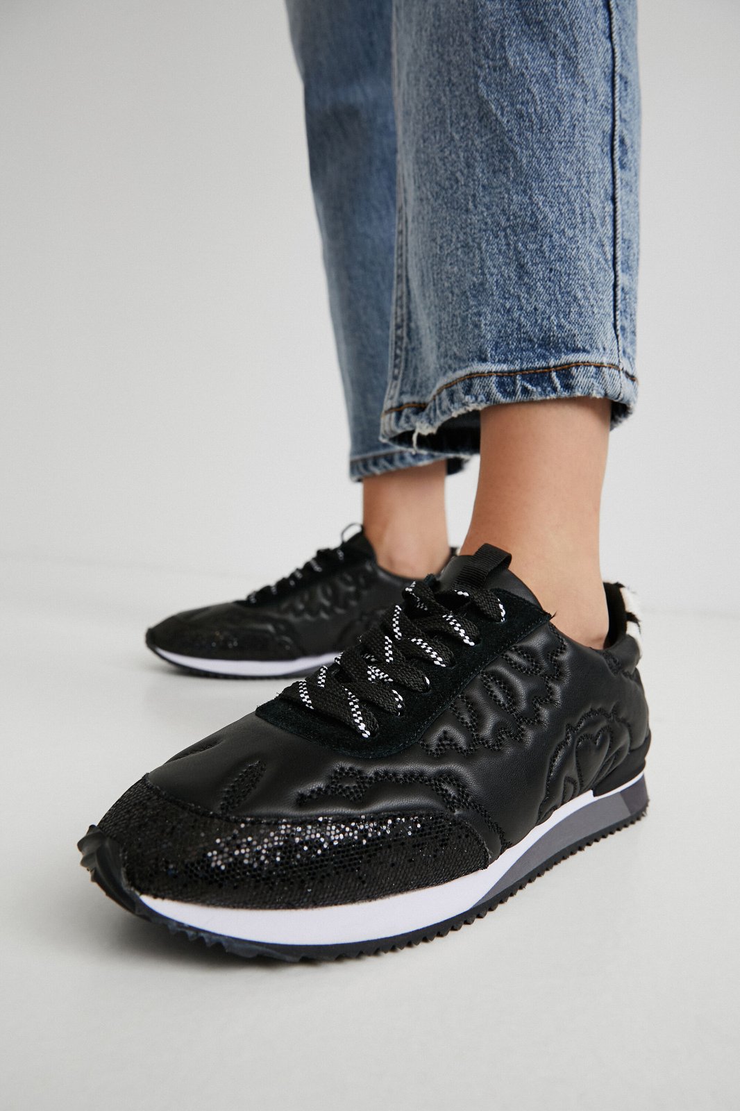 Či už ste bežec alebo nie, tieto tenisky sú pre vás. Hoci majú bežeckú siluetu, sú ideálne na každodenné nosenie. Vyrobené zo syntetickej kože s kvetinovou potlačou a trblietavými detailmi na podrážke.