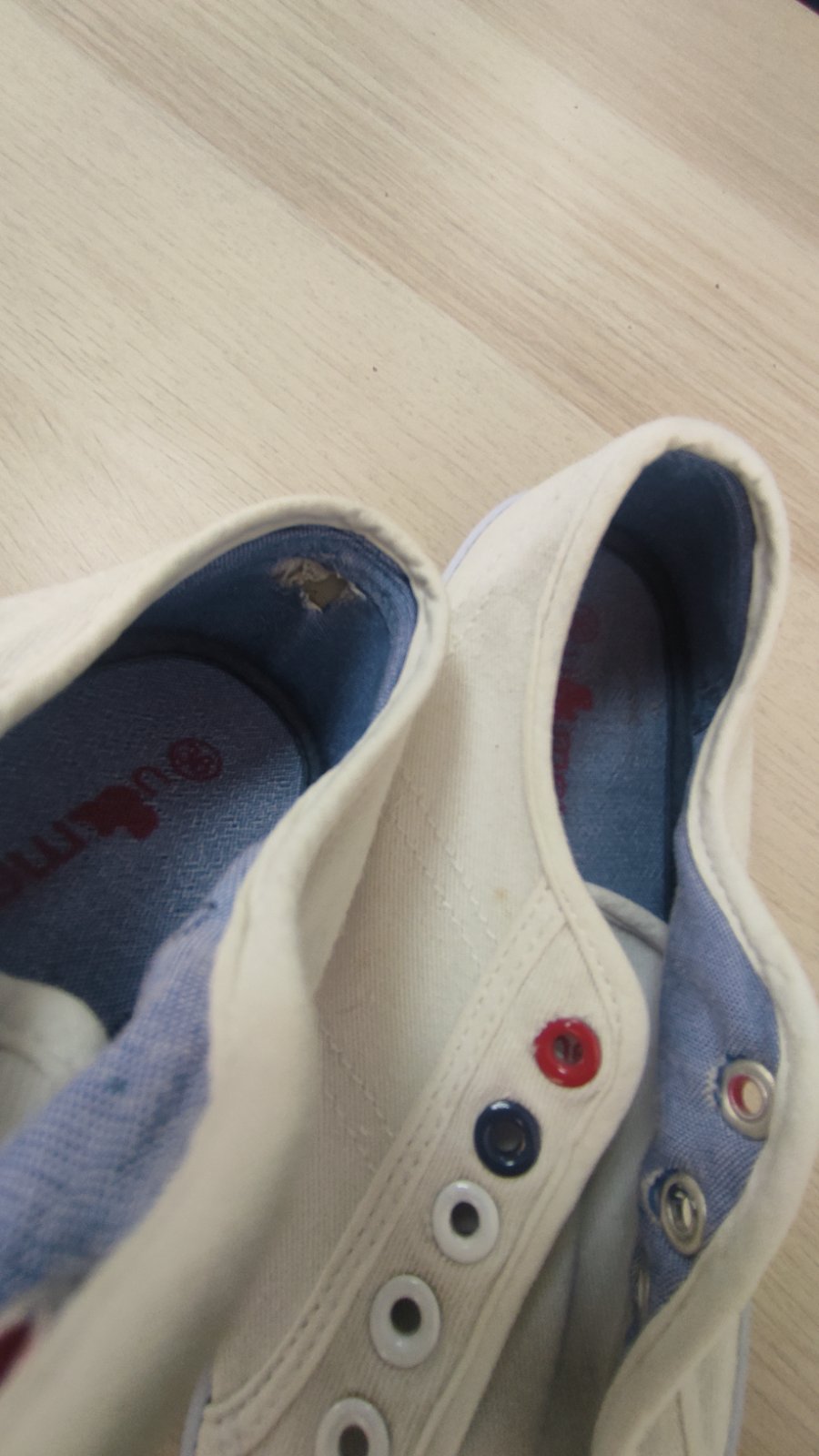 Dobrý nosený stav. Na ľavej päte trošku predrane vnútro