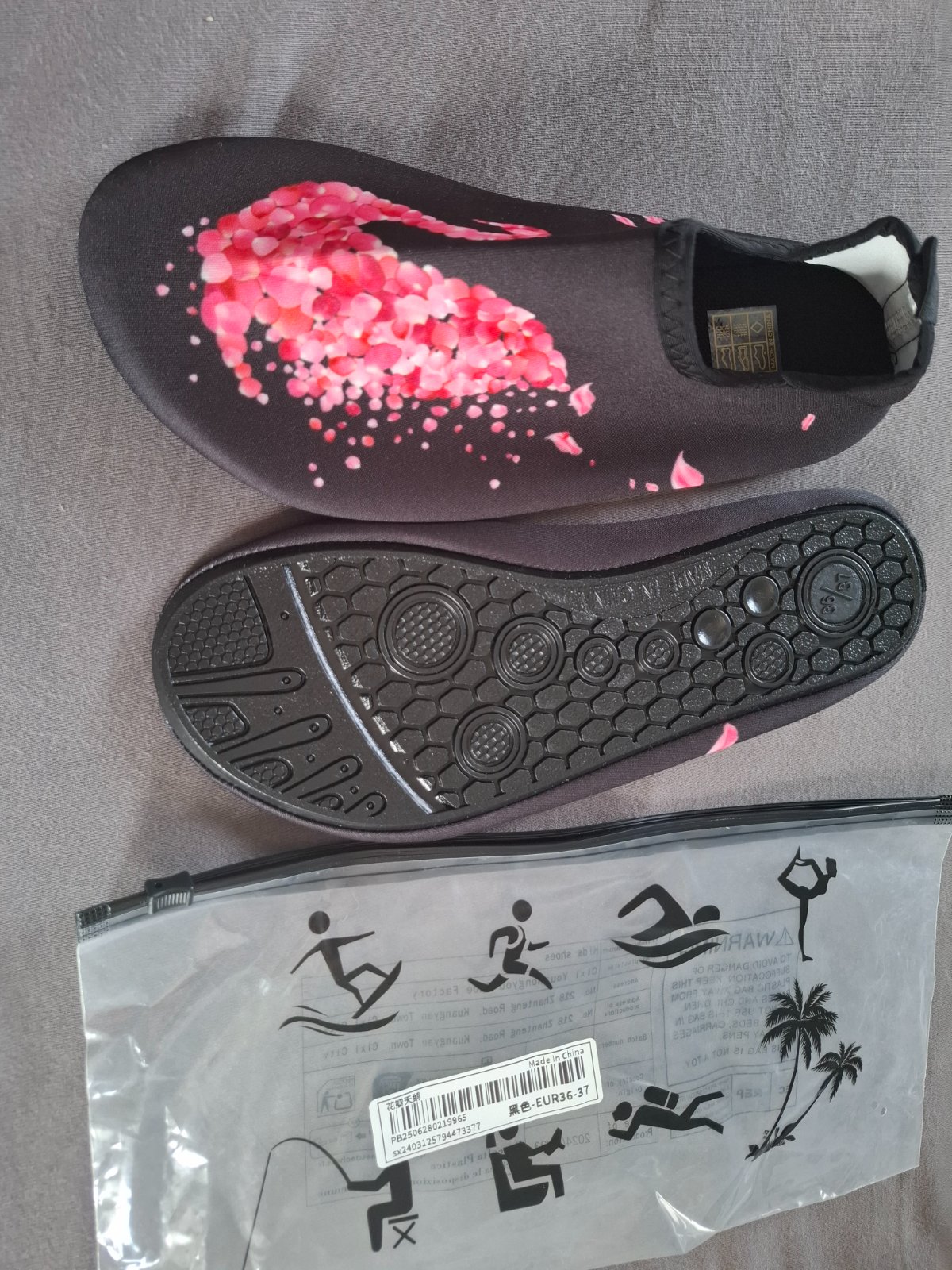 Protišmykové topánky vhodné k moru alebo k bazénom. Dostupné veľkosti: M, S Vnútorné rozmery: XS (35-36): 23,3 x 8,2 cm S (37-38: 24,6 x 8,8 cm M (39-40): 25,5 x 9,2 cm L (40-41): 26,1 x ...