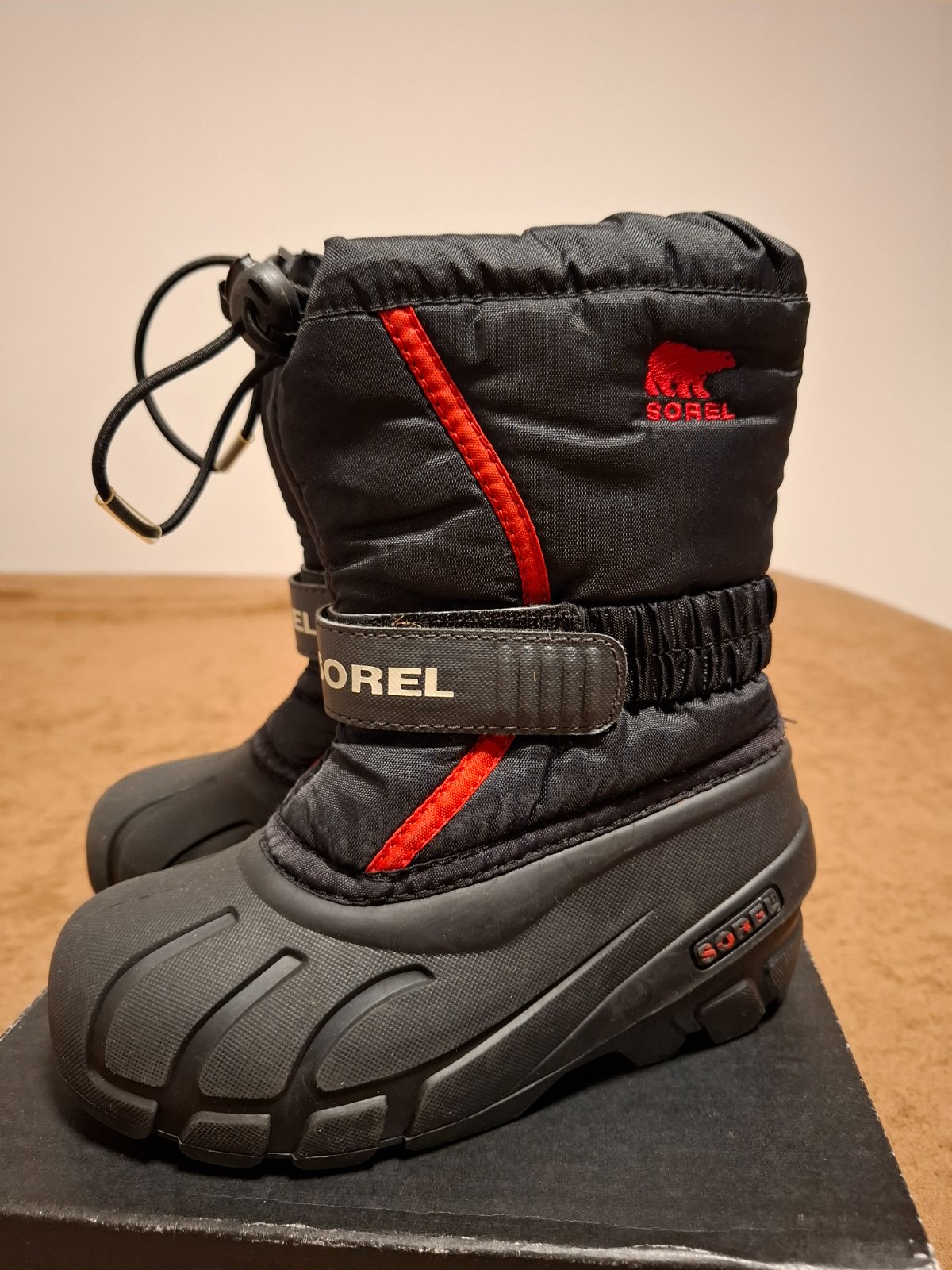 Perfektne čižmičky sorel. Brušná koža, v teple e kožušínou. Dobrý noseny stav. V predu na špičkách biely lem trochu zodraty. Inak funkčné. Veľkosť 29, 17cm.cena zohladnena podľa opotrebenia. Pôvodn...