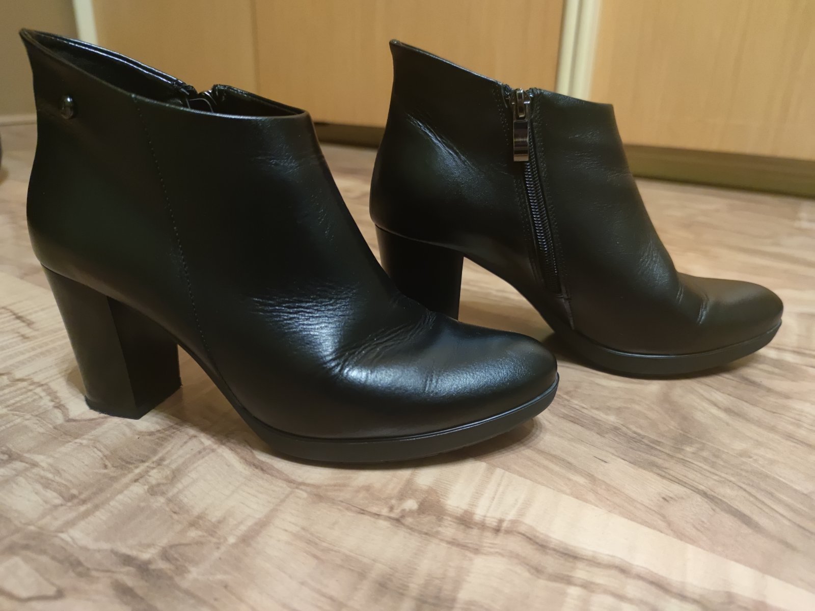 Brúsená koža. Sympayexová membrána. Zateplená obuv. Vhodné do chladného počasia. Zapínanie zboku na zips. Obuv bola iba skúšaná. Bezchybný stav. Viď podrážka. Veľkosť 38. Dĺžka stielky 25cm.