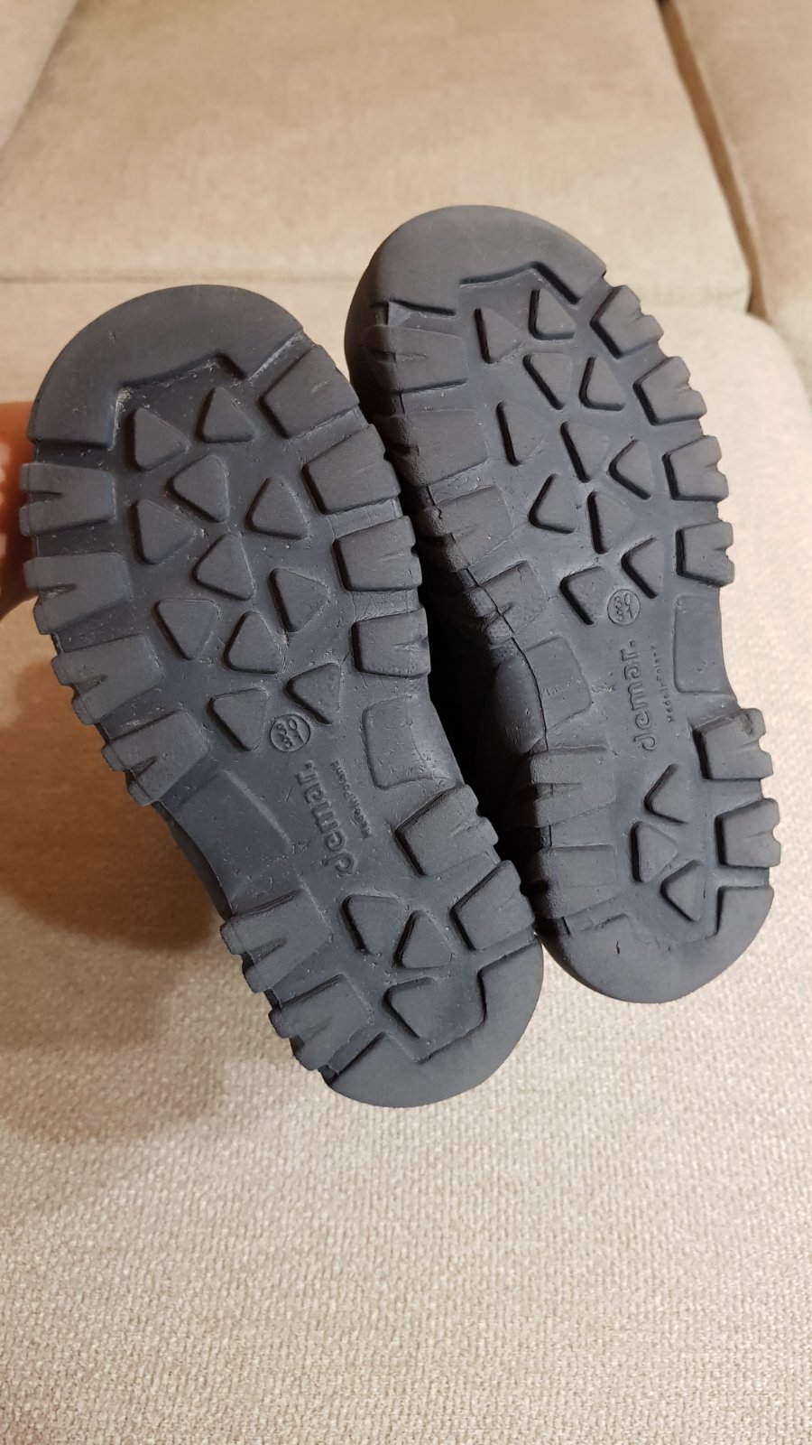 Zimné snehule značky Demar, veľkosť 30-31, nosené, stielka z ovčieho rúna sa úplne zničila, preto predávam bez stielky za symbolickú cenu 4 € + pošta. Ak bude mať kupujúci záujem, viem objednať novú stielku (stojí cca 10 €), lebo budem objednávať odtiaľ nové zimné, a potom poslať spolu aj stielku aj snehule za jednu cenu poštovného. Menšia chyba: rozpáraný jeden suchý zips do polovice, ale dá sa to zašiť.