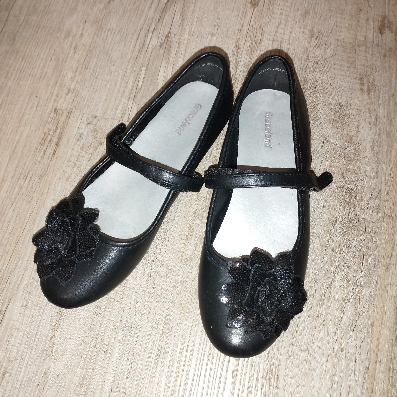 Pekné čierne balerínky s kvetinkou a stredovým suchým zipsom na lepšie nosenie,veľkosť 34, vd 21cm, v peknom používanom stave
