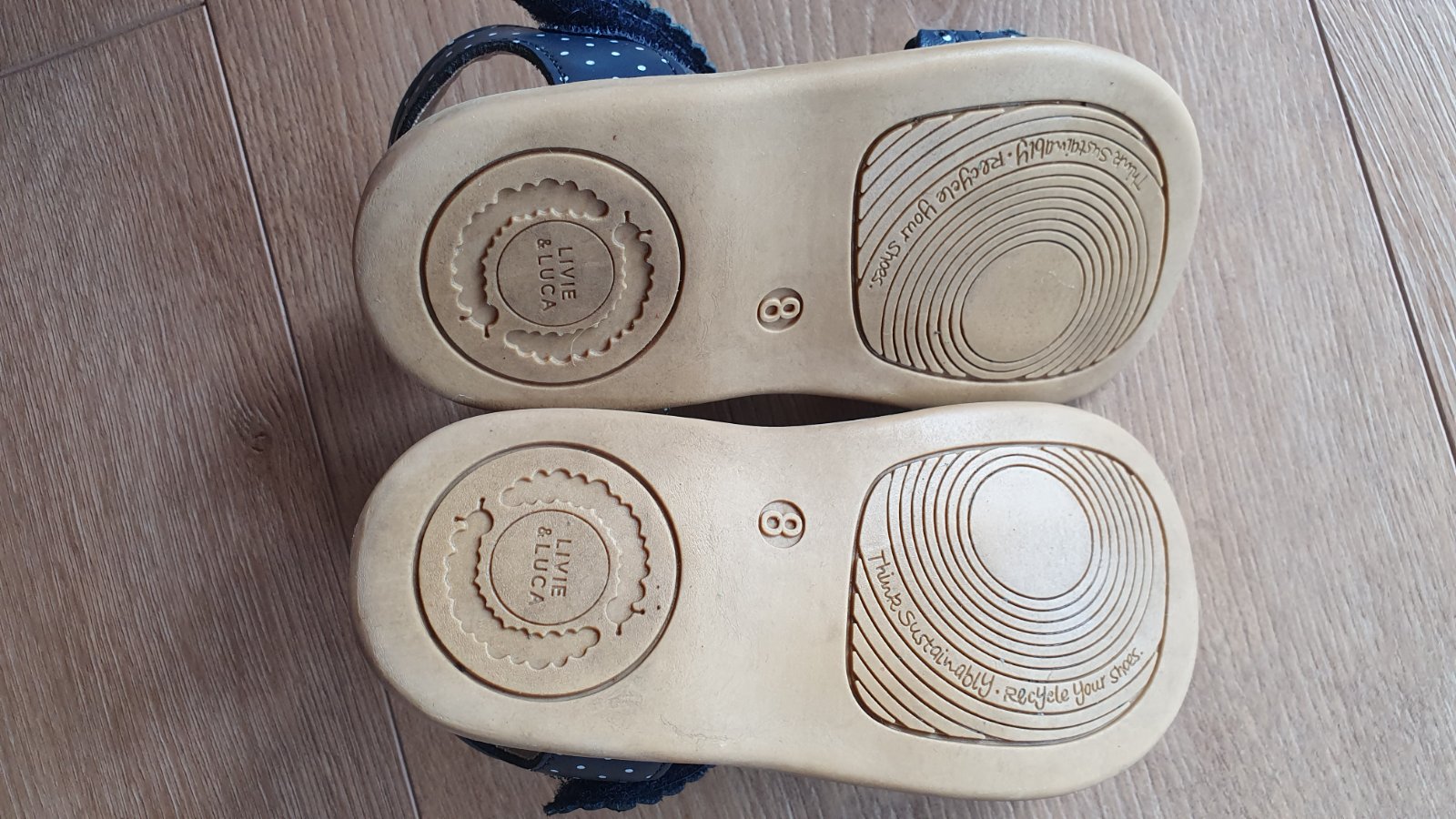 Kožené barefoot sandalky. Noseny stav,jednu troska okusalo naše šteniatko ale nemá to vplyv na funkčnosť. (vid foto). Na dvor ešte dobre poslúži. VD 16.5cm.